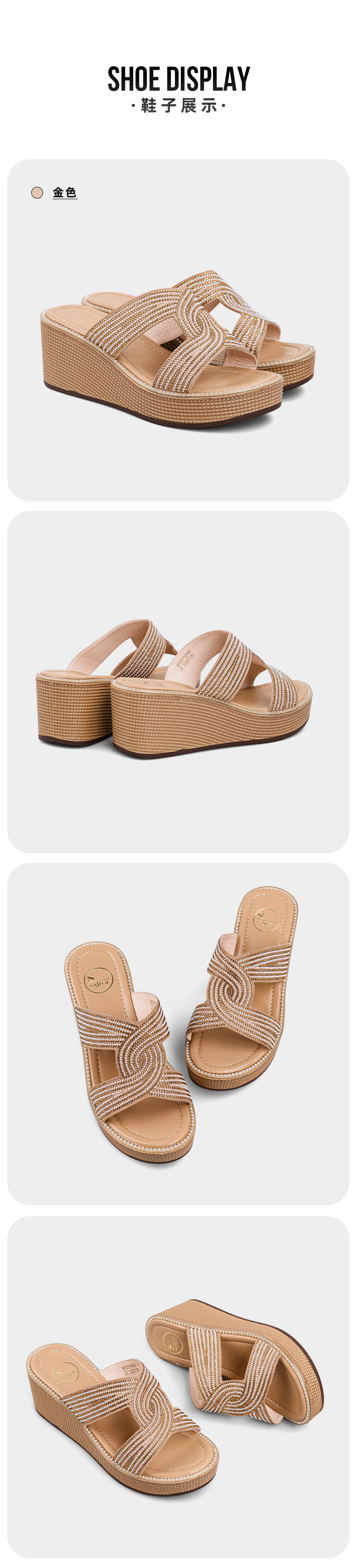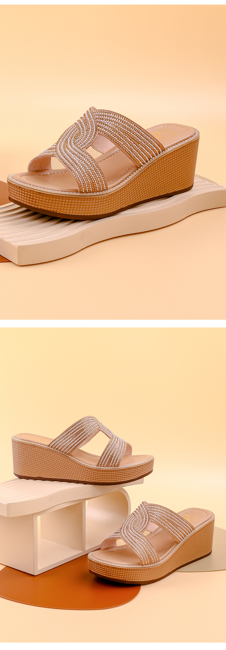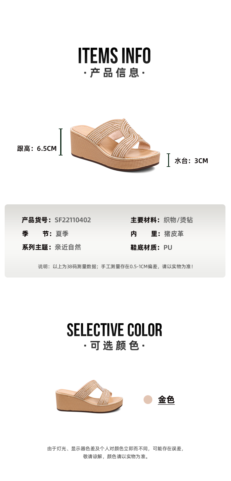 Safiya索菲娅双C烫钻带轻量厚底拖鞋2022新款坡跟增高凉拖SF22110402