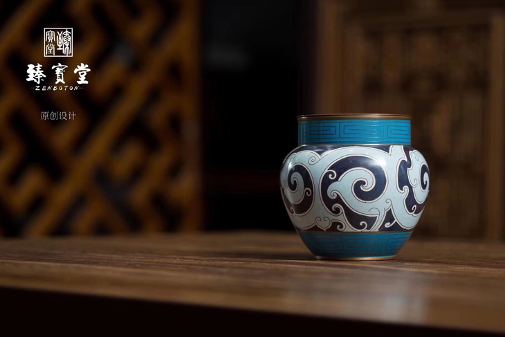 Name:碧海潮声-景泰蓝卷云纹建水(蓝)