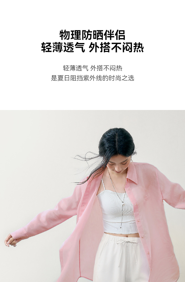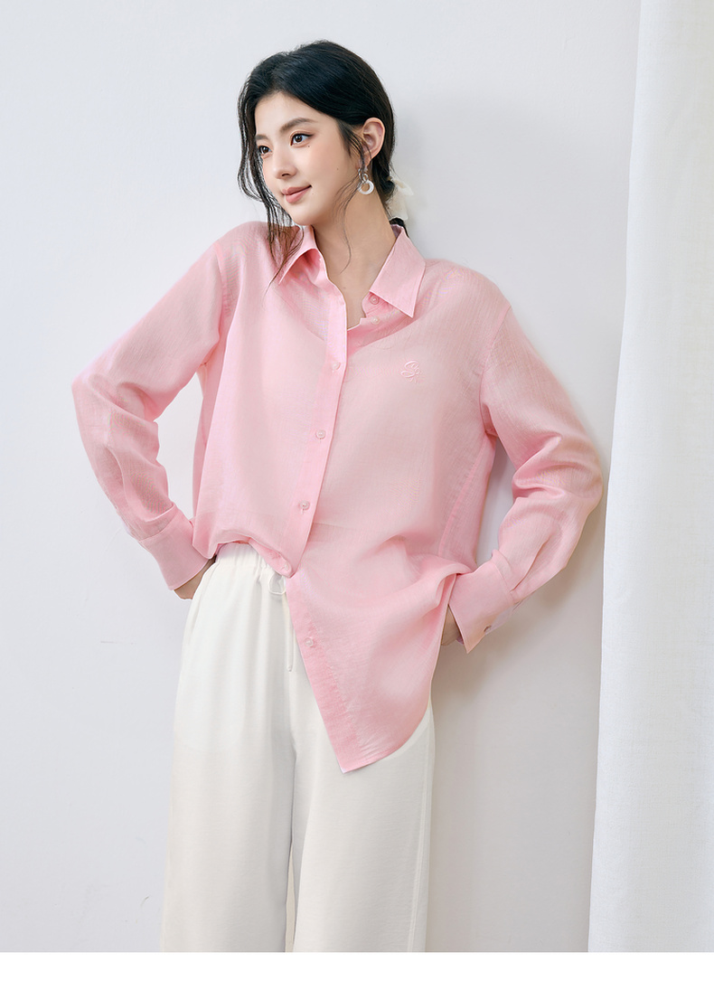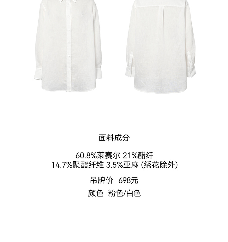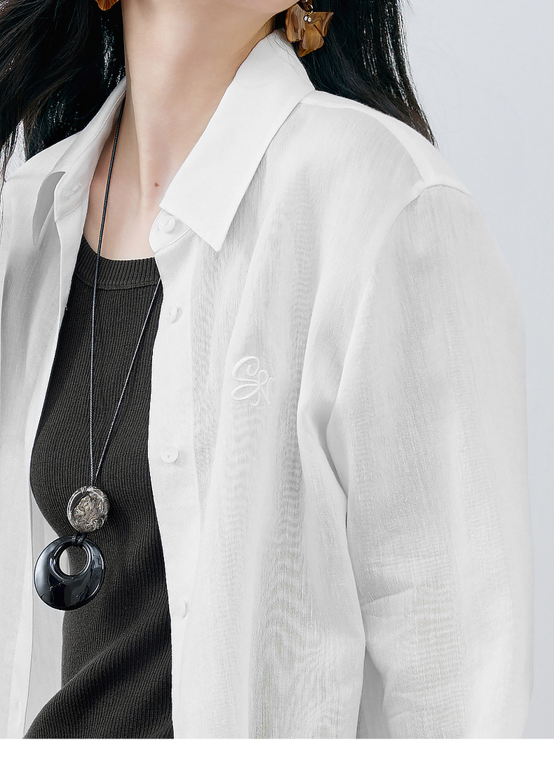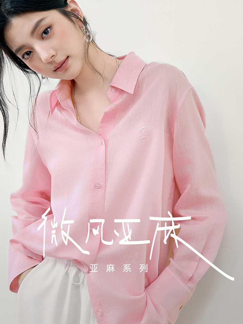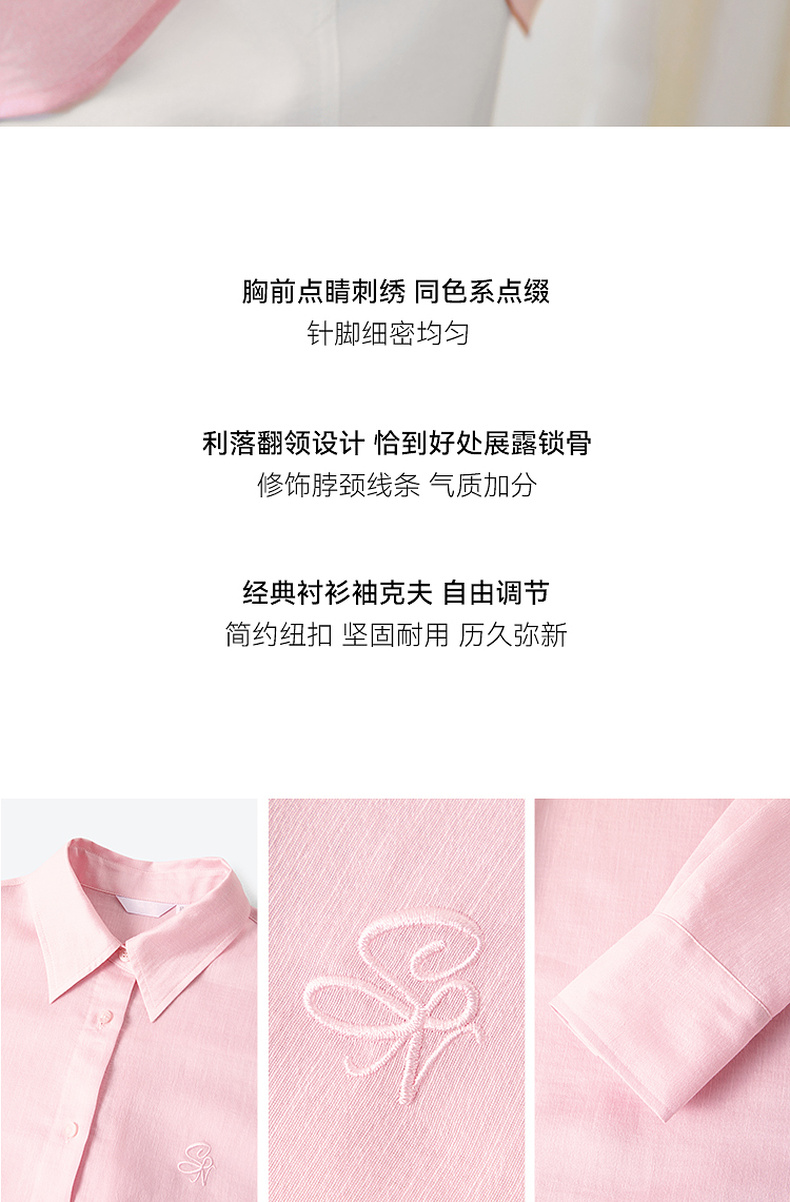 【严选】诗凡黎诗凡黎亚麻系列轻薄透气衬衫25夏新款天丝醋酸大版型绣花防晒衬衣7G6420791