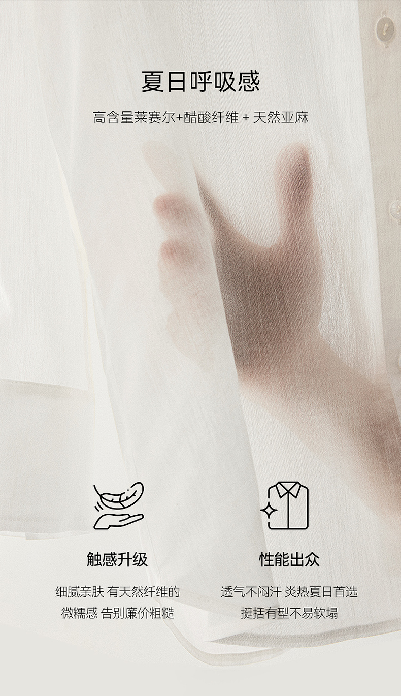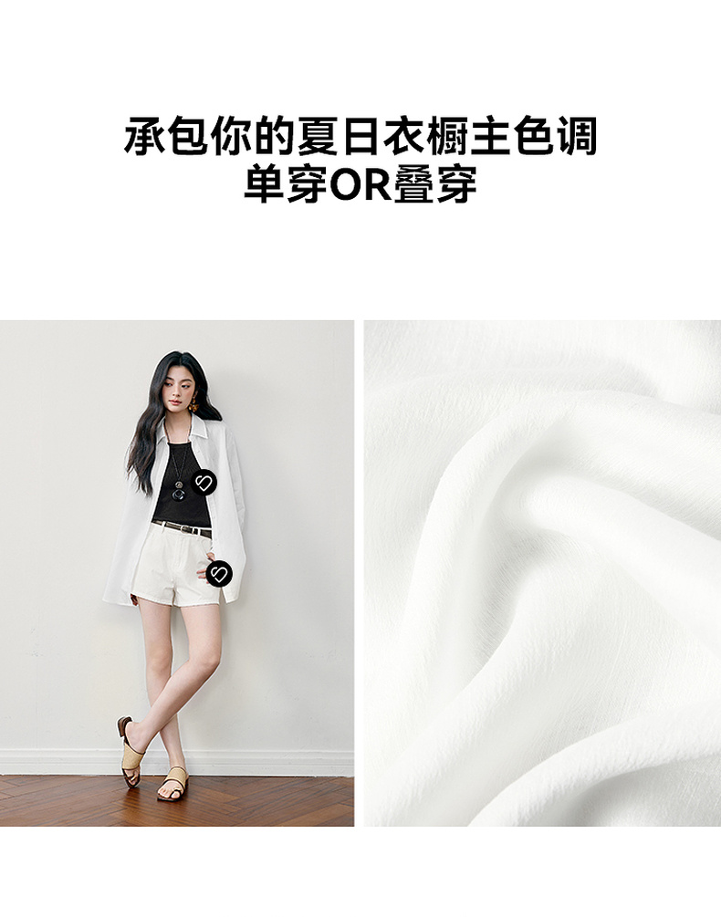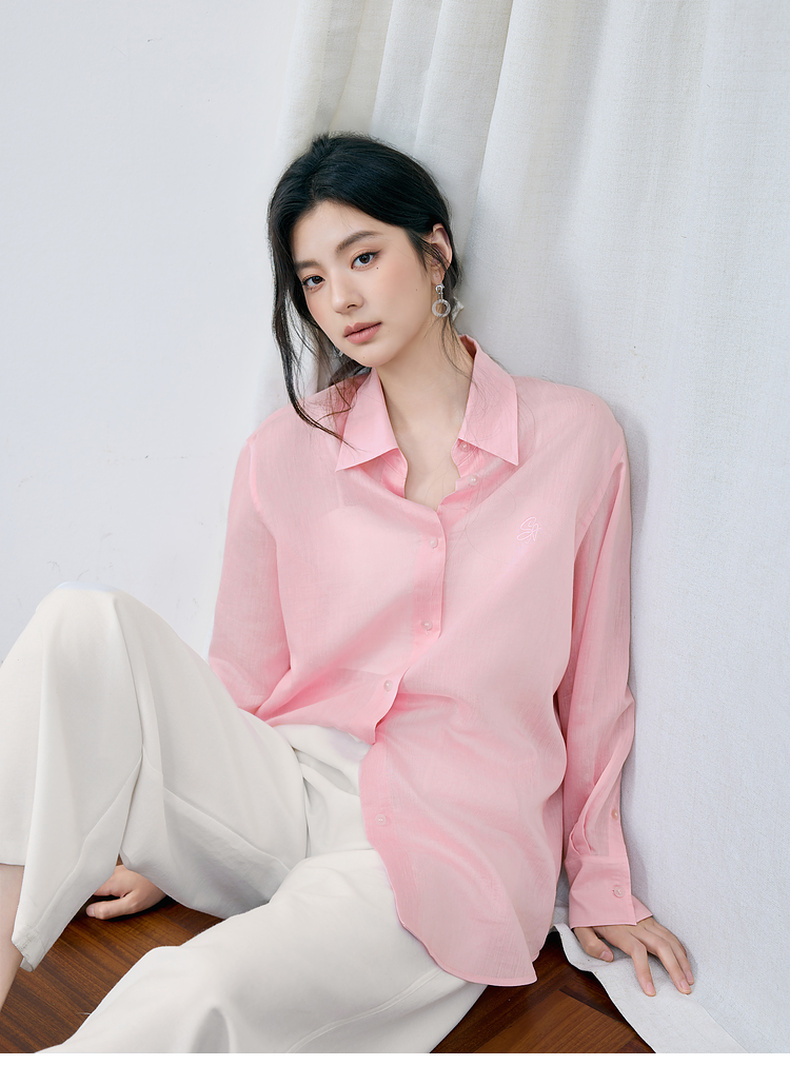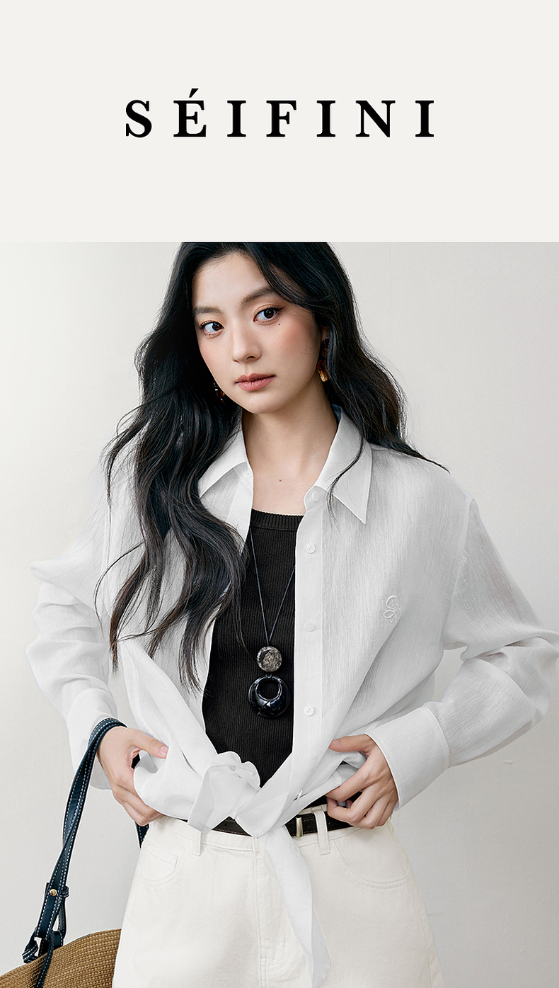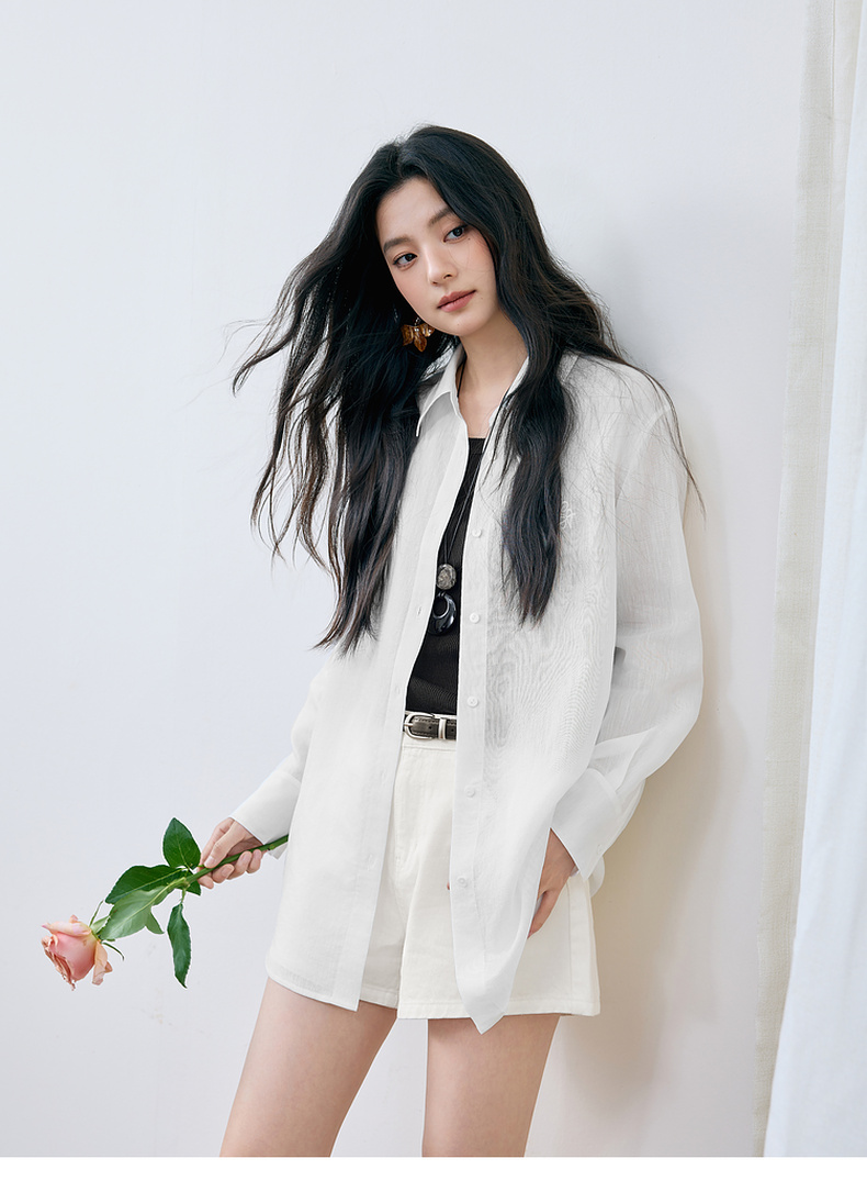 【严选】诗凡黎诗凡黎亚麻系列轻薄透气衬衫25夏新款天丝醋酸大版型绣花防晒衬衣7G6420791