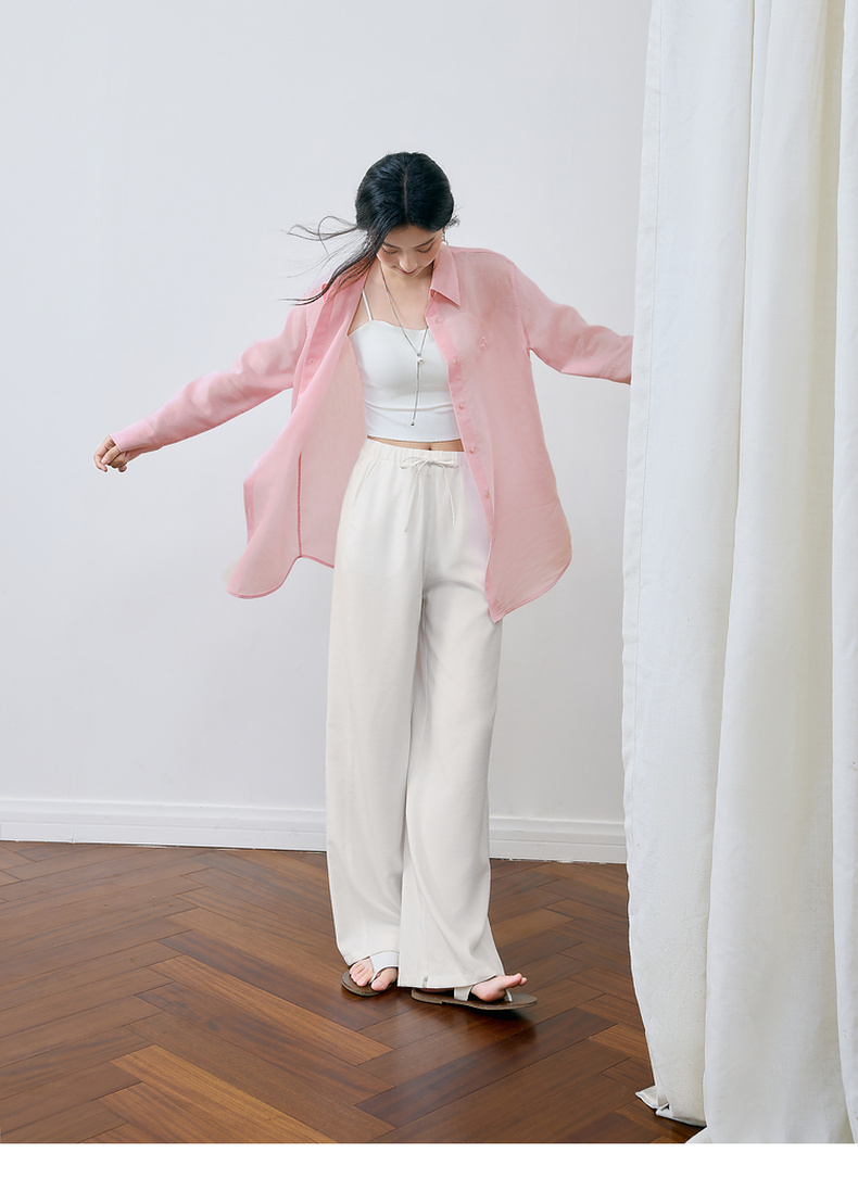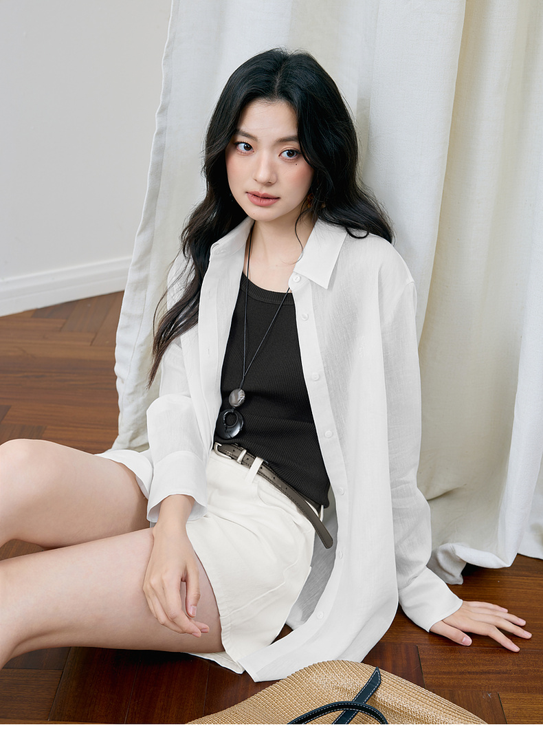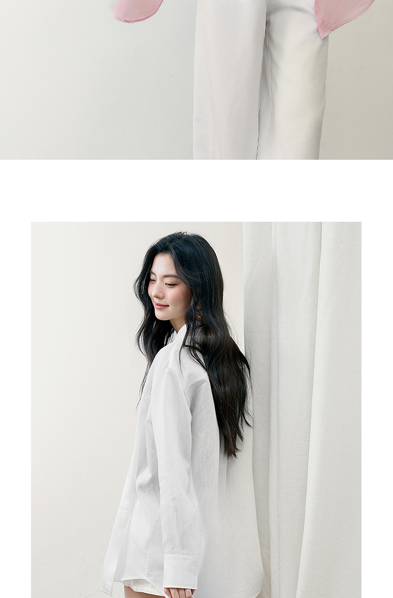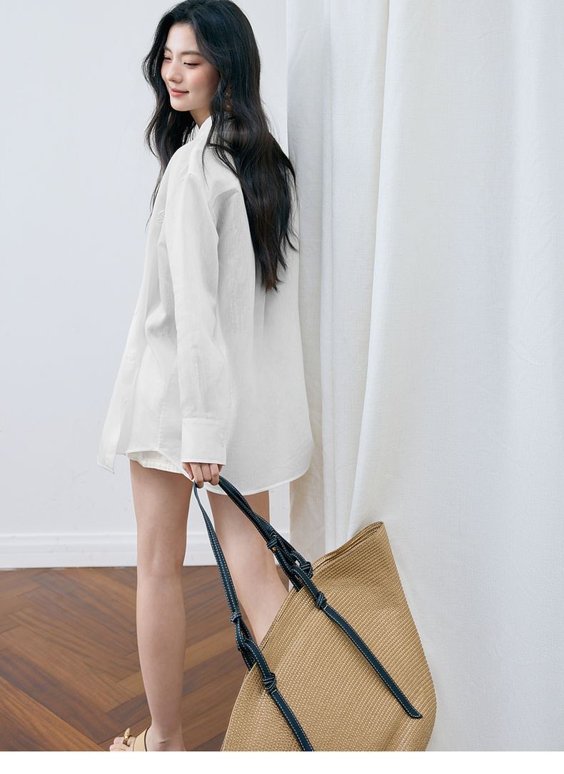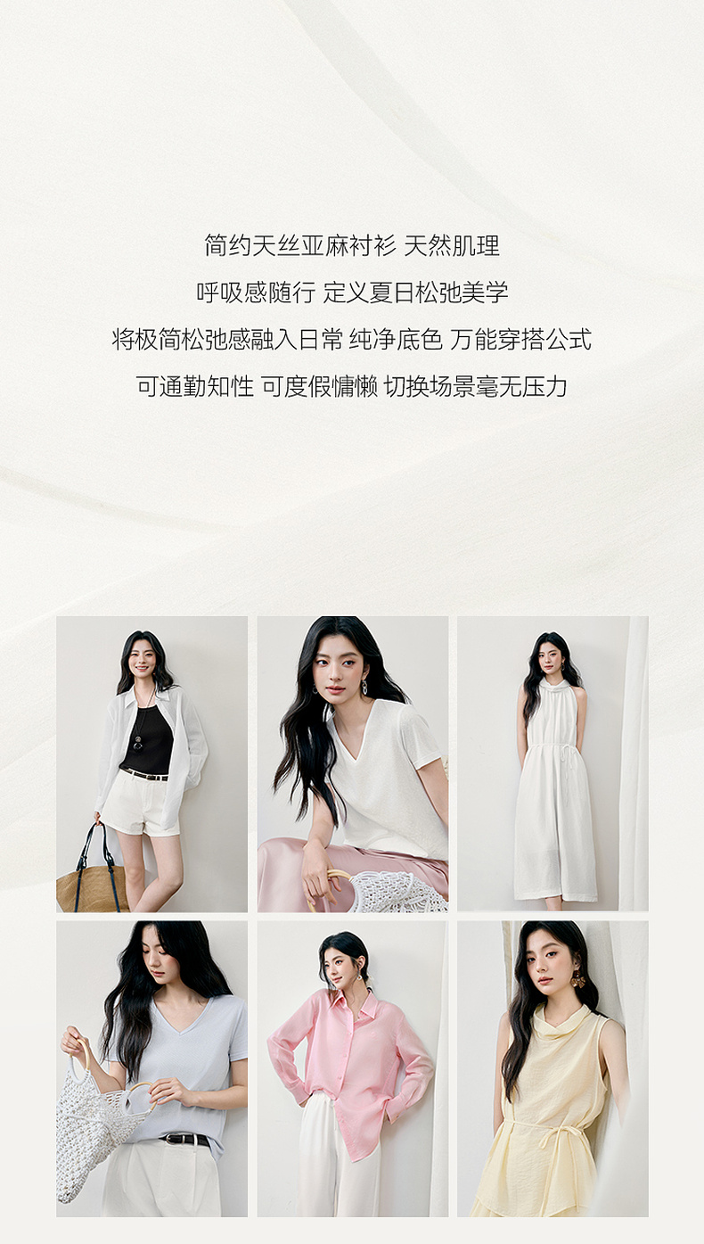 【严选】诗凡黎诗凡黎亚麻系列轻薄透气衬衫25夏新款天丝醋酸大版型绣花防晒衬衣7G6420791