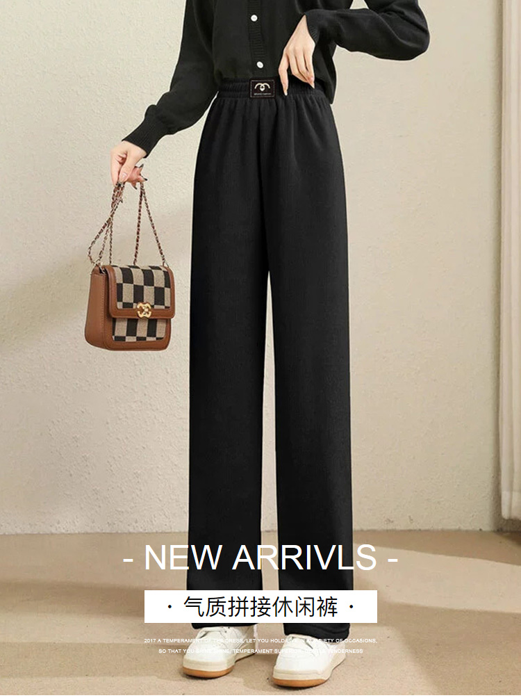 奢姿2024年冬季新款大码女装简约松紧长裤胖妹妹直筒拼接休闲裤9944569362