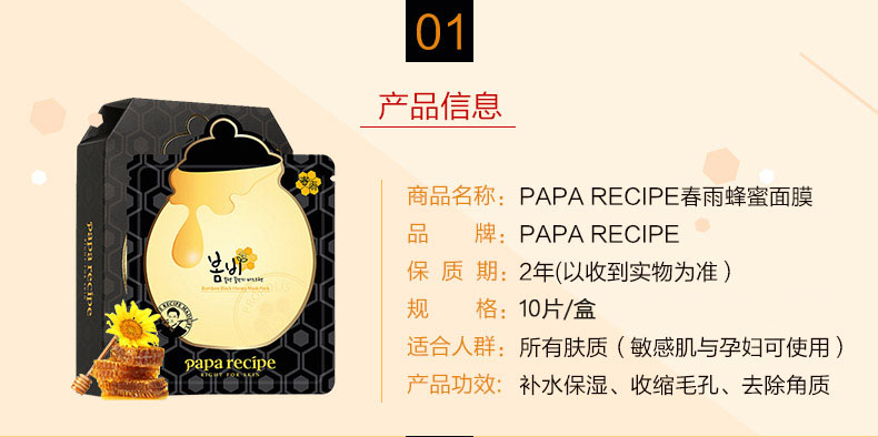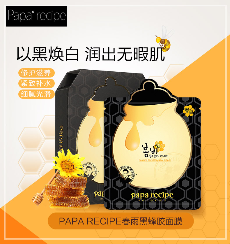 春雨papa recipe 黑蜂胶面膜 10片/盒