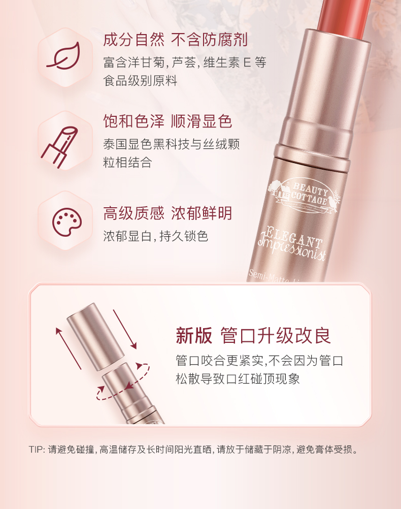 BC小铜管优雅印象派半哑光口红