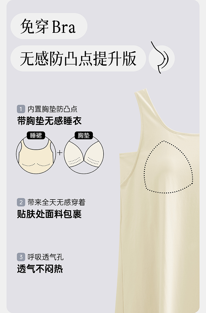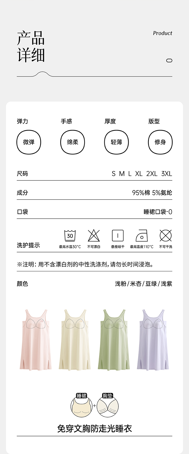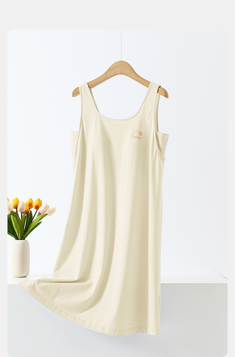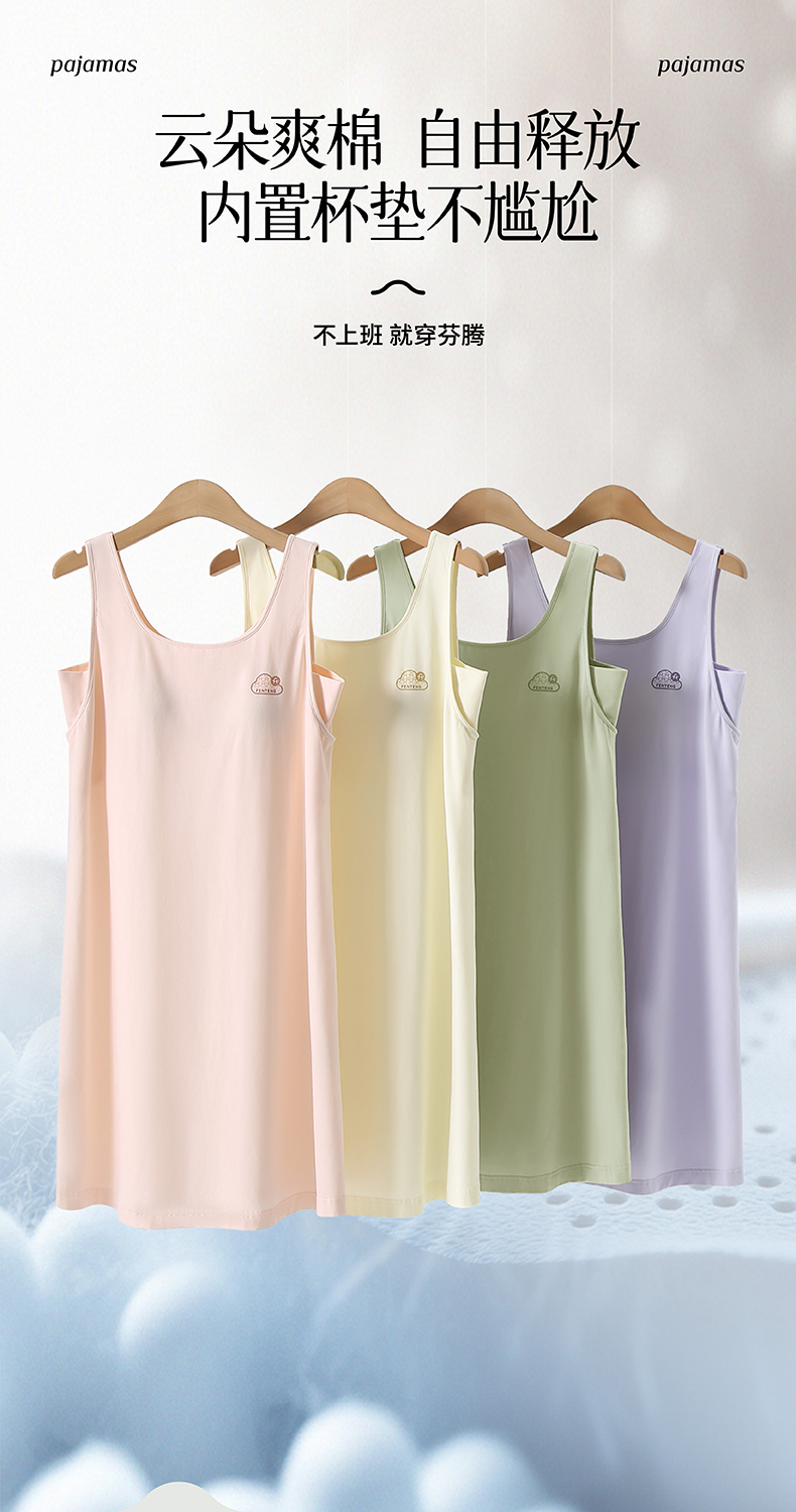 芬腾睡裙女款夏季纯棉吊带睡衣带胸垫一体式背心裙薄款凉感长裙子