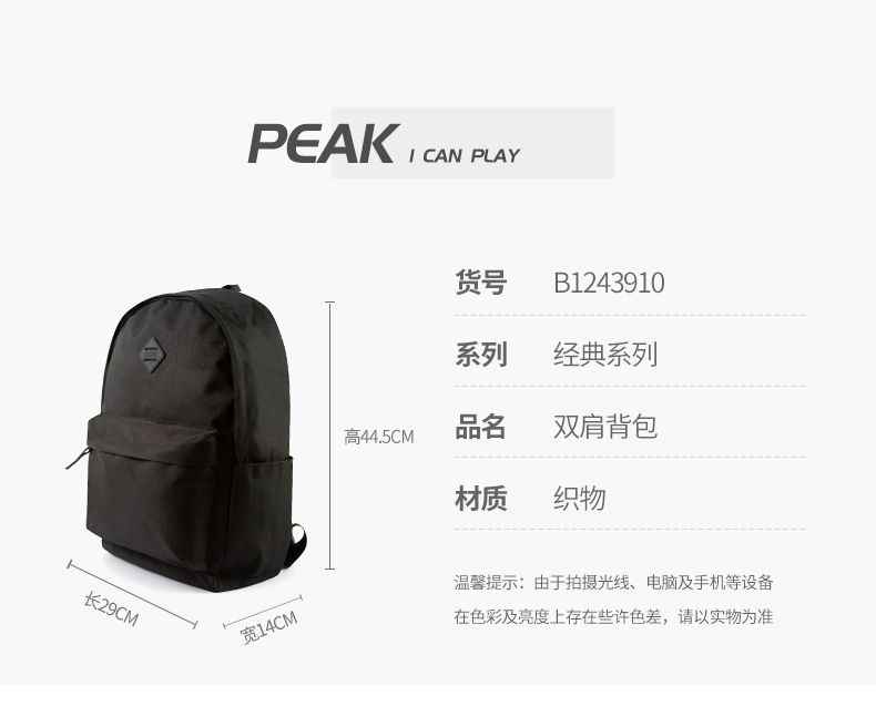 匹克2024年秋冬新款时尚系列双肩背包B1243910