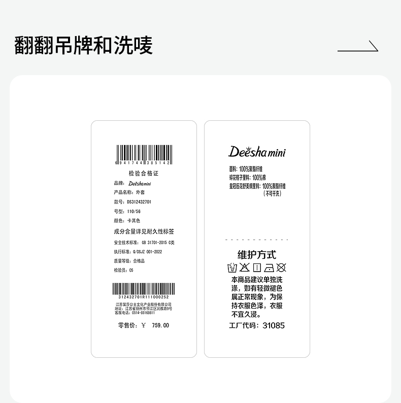 笛莎Deesha 童装女童2024秋季新款小童外套风衣