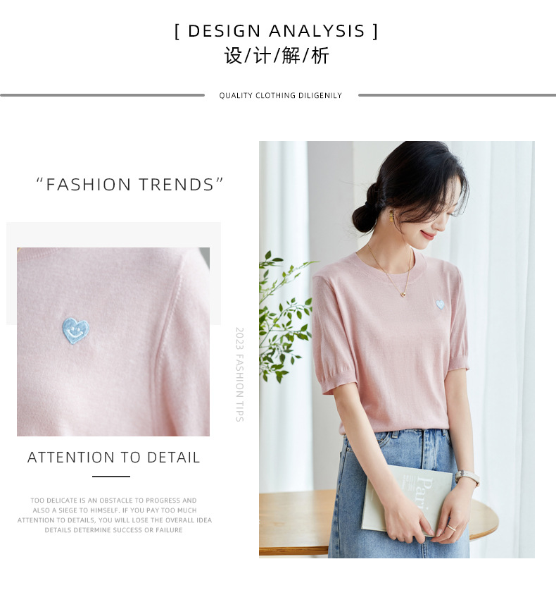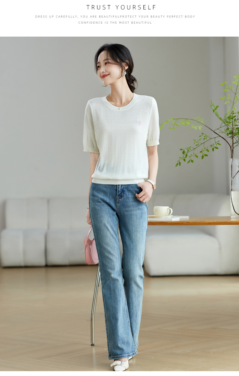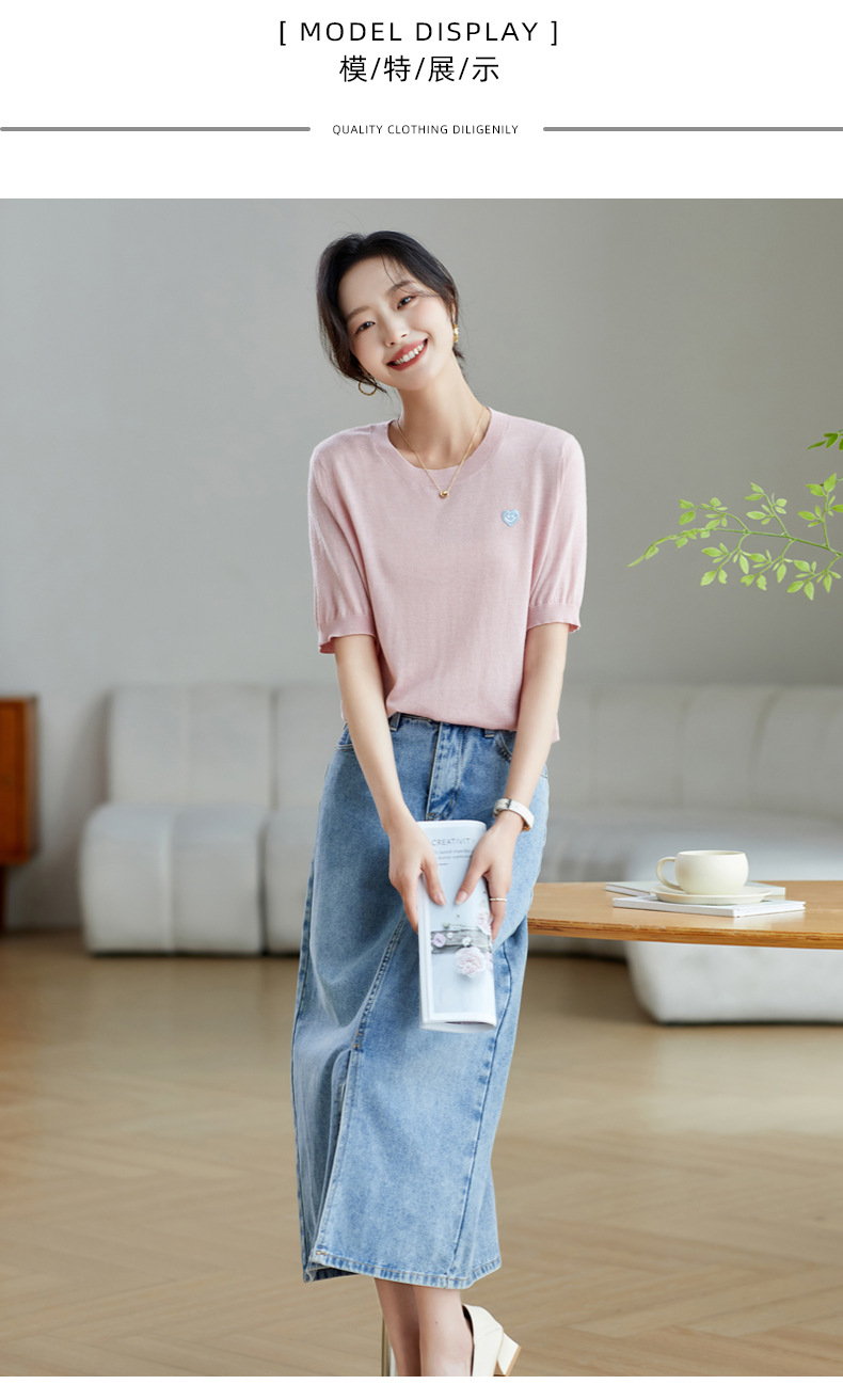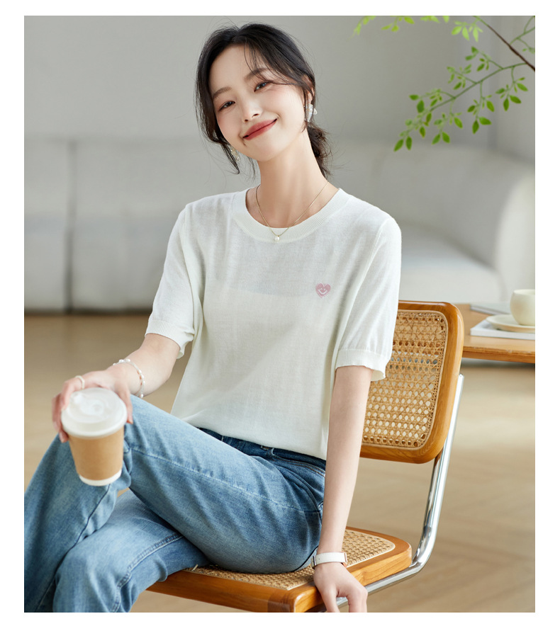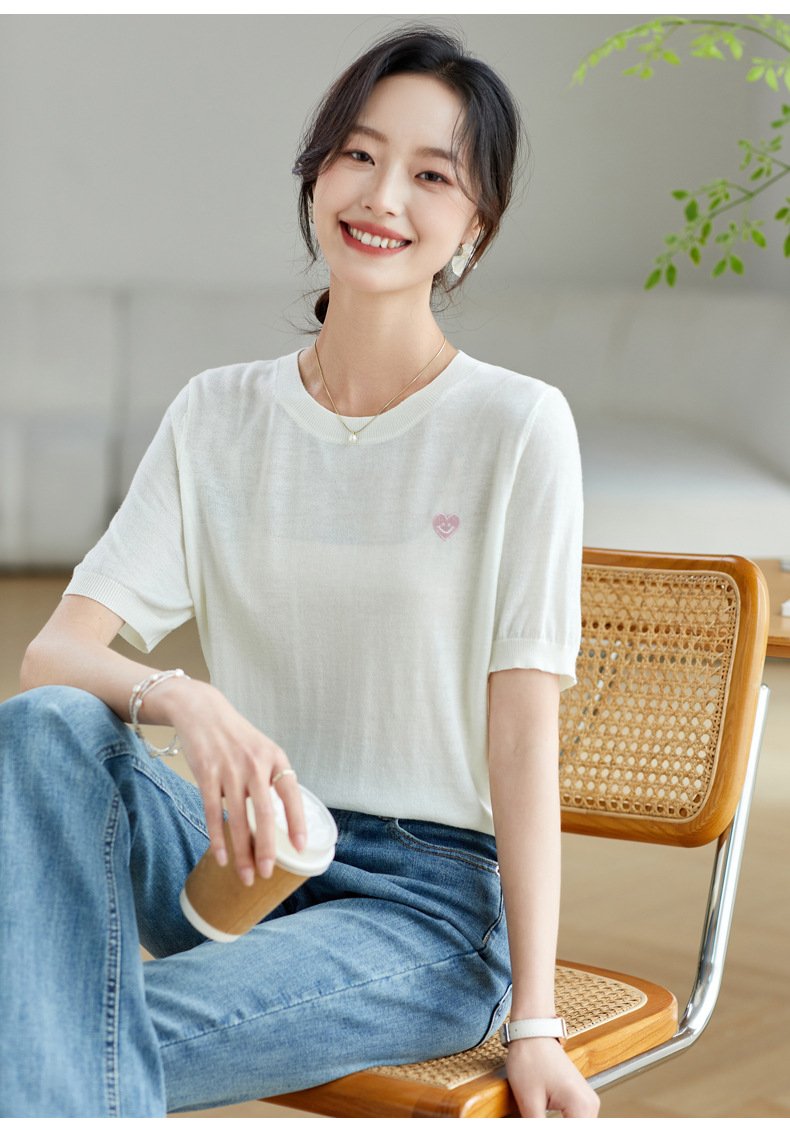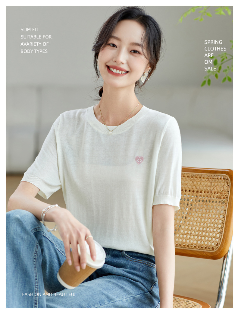 冰丝正肩短袖t恤,气质圆领上衣薄款CC-QL-9000