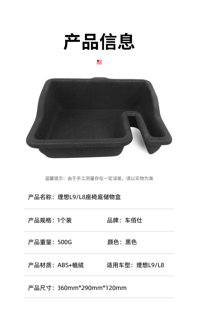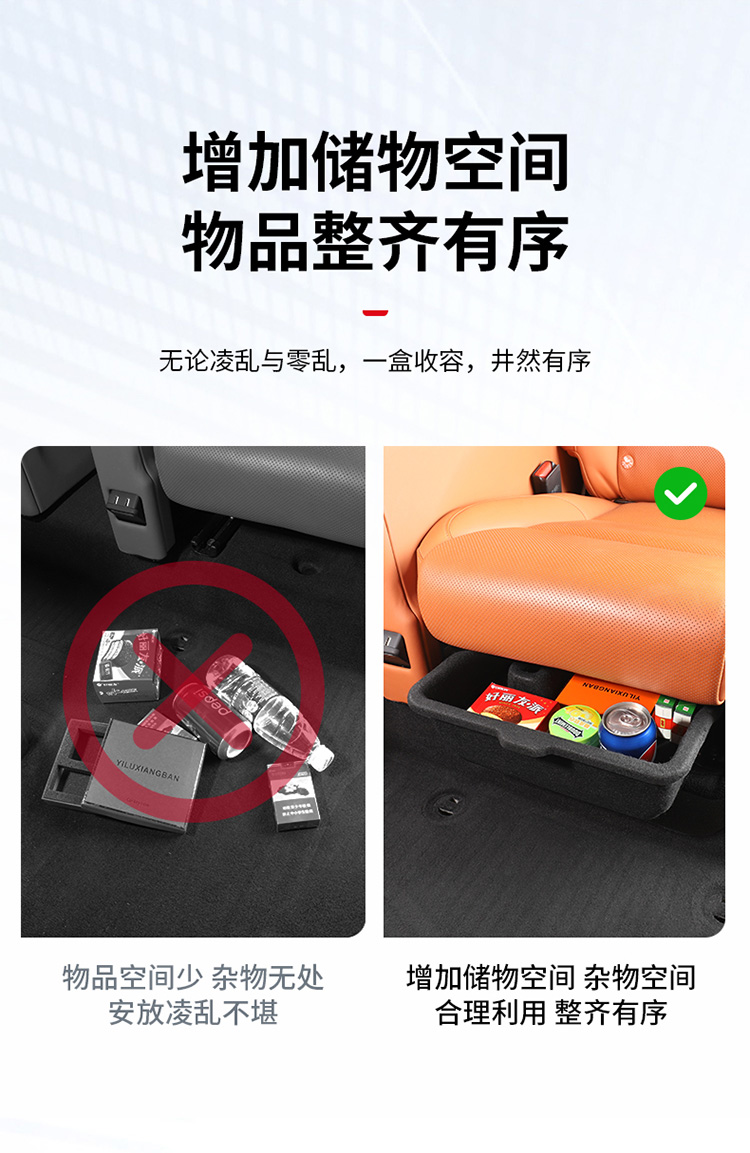 理想L9/L8座椅下储物盒收纳置物扶手箱中控改装汽车用品大全配件