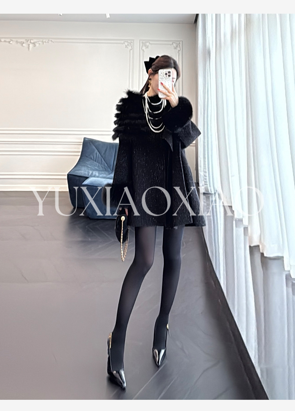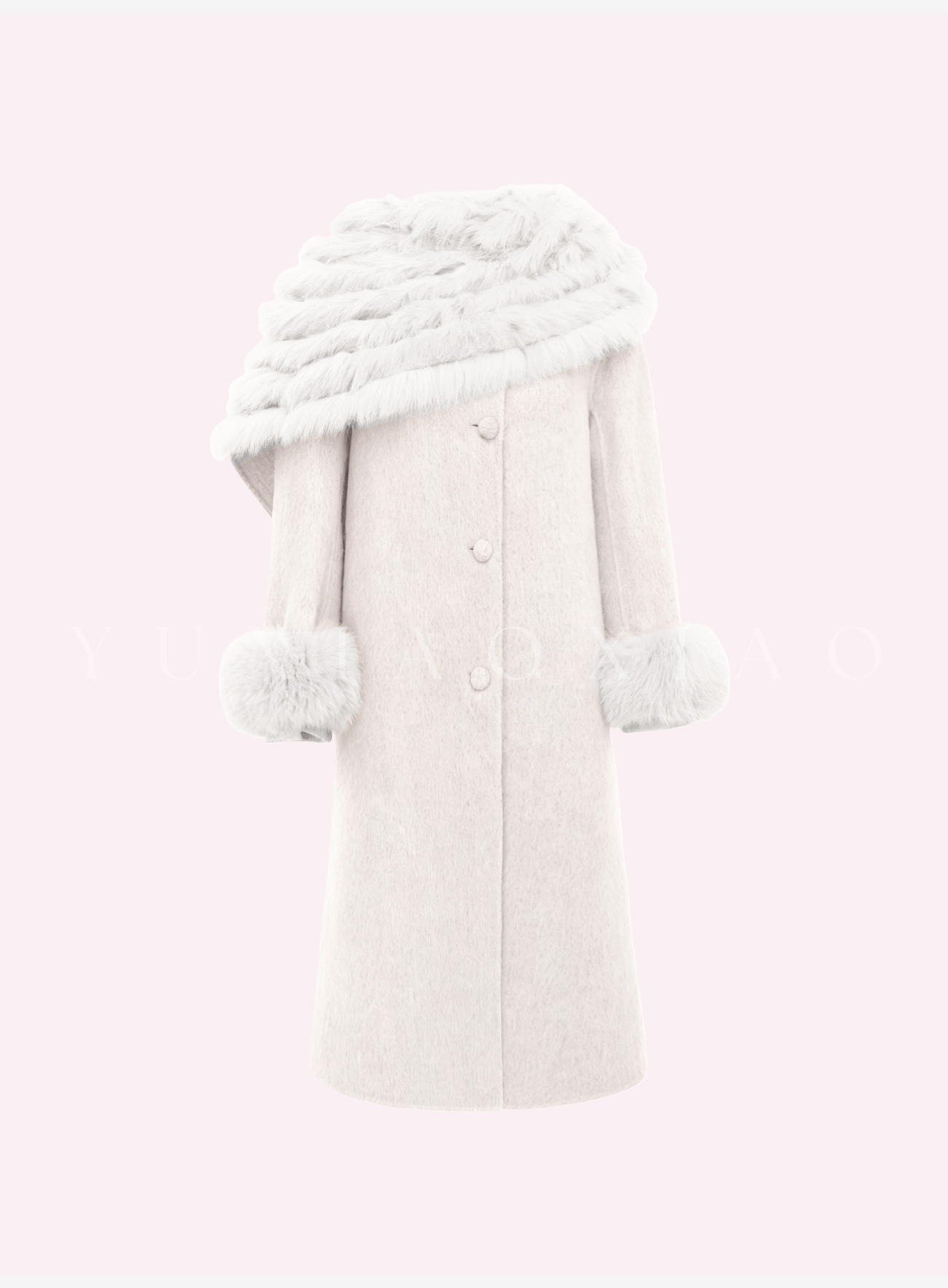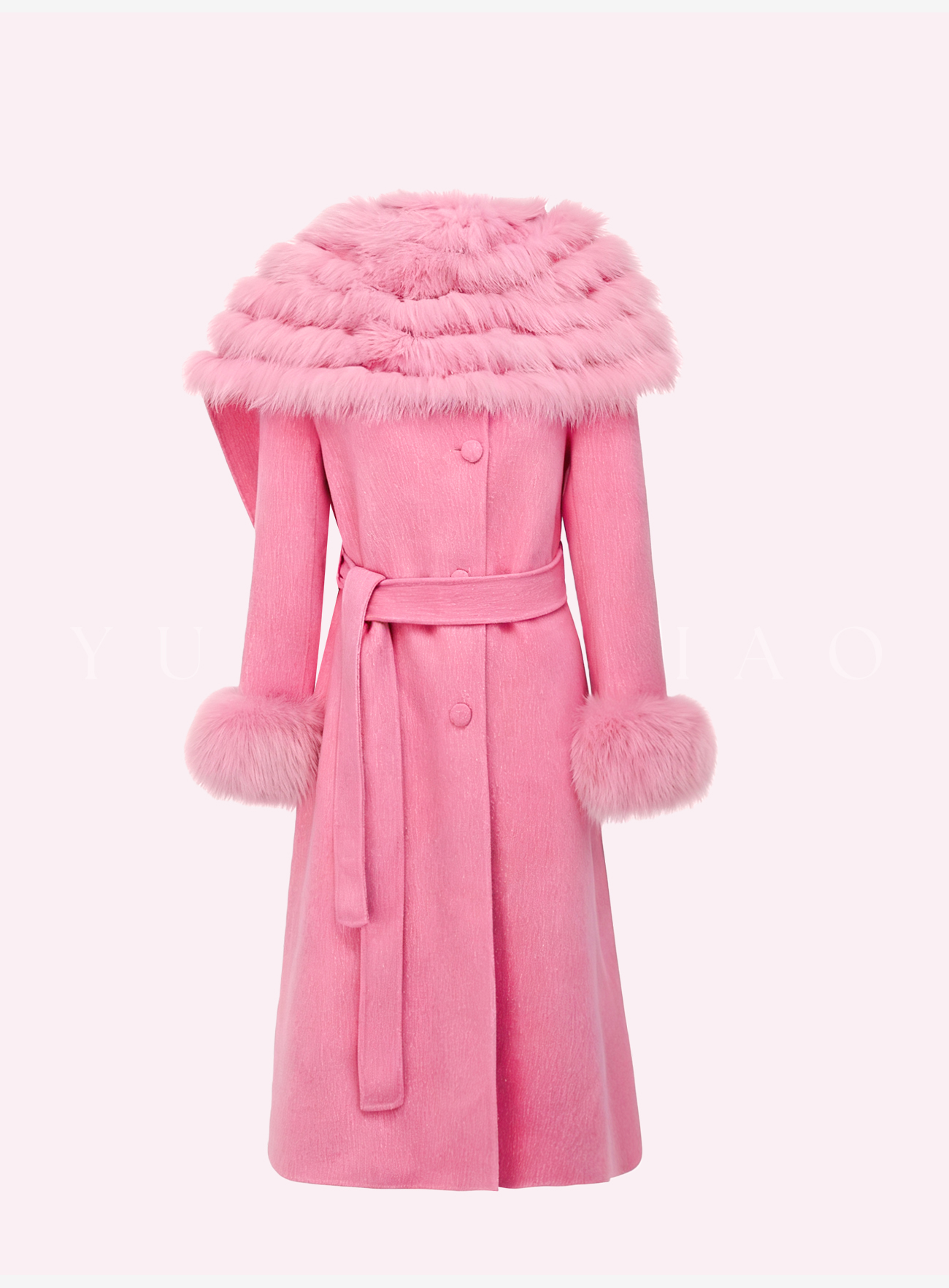 余潇潇【粉黛倾城】羊驼毛绵羊毛肌理感可拆卸狐狸毛披肩袖子大衣