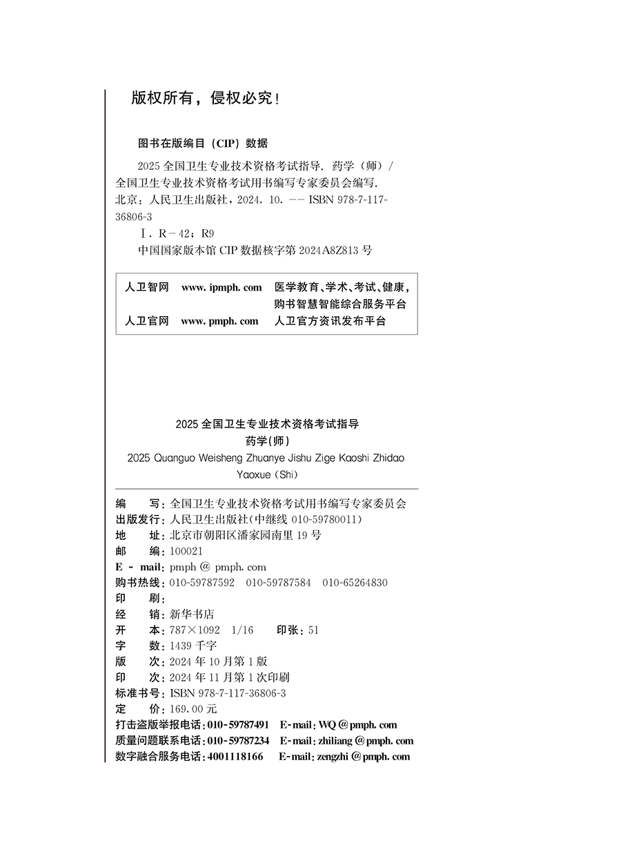 书名:2025全国卫生专业技术资格考试指导——药学(师)