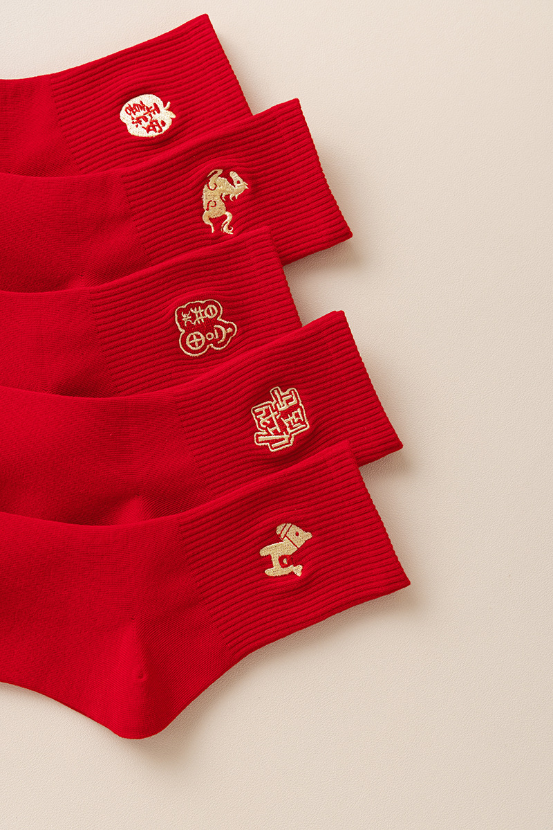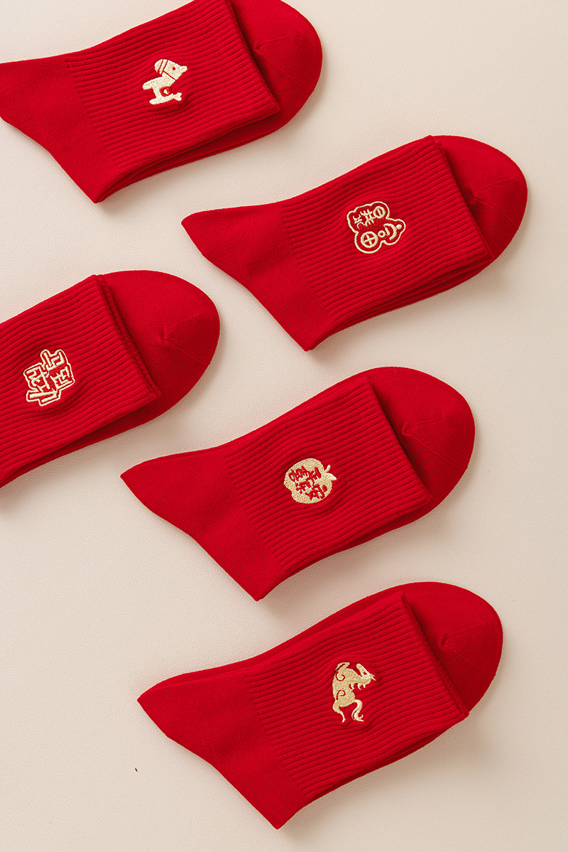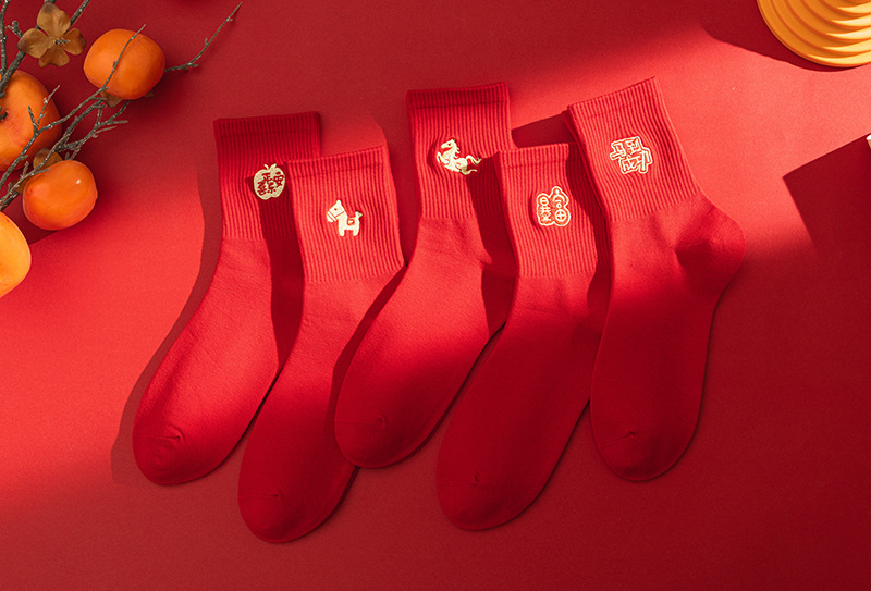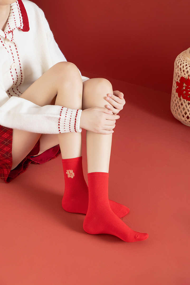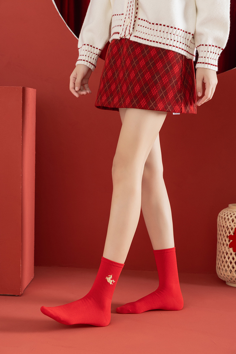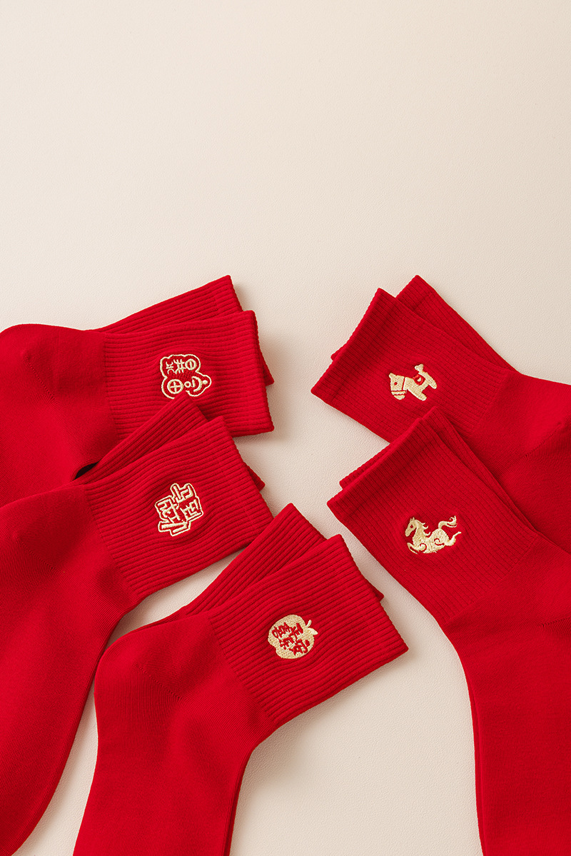 【本命年鸿运袜❗️精美礼盒装】2026马年新年大红袜子本命年红色袜子礼盒刺绣高橡筋中筒棉袜礼物。jc