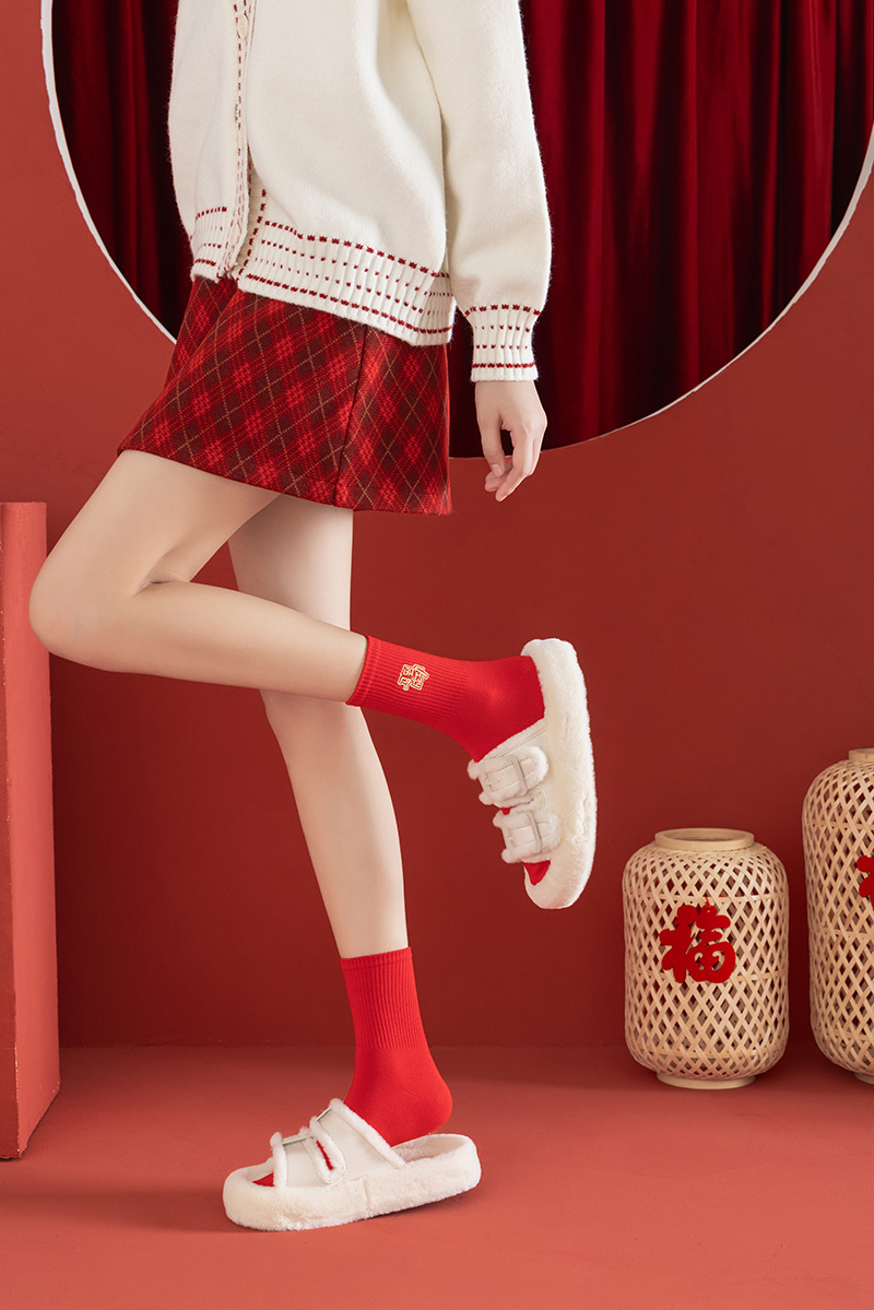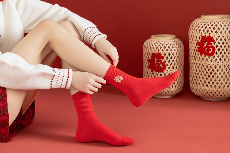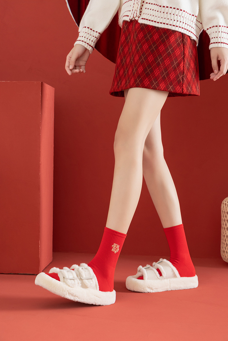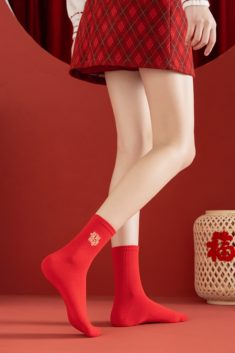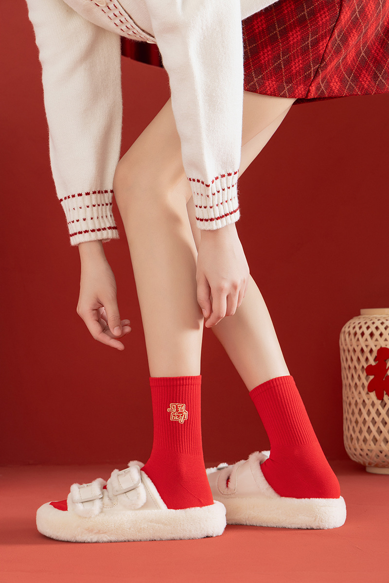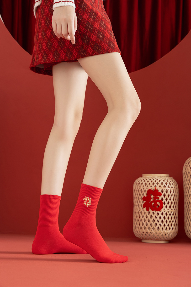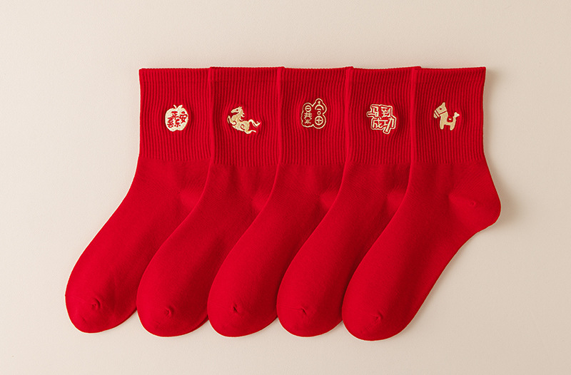 【本命年鸿运袜❗️精美礼盒装】2026马年新年大红袜子本命年红色袜子礼盒刺绣高橡筋中筒棉袜礼物。jc