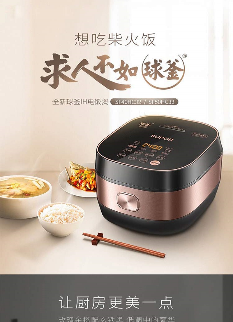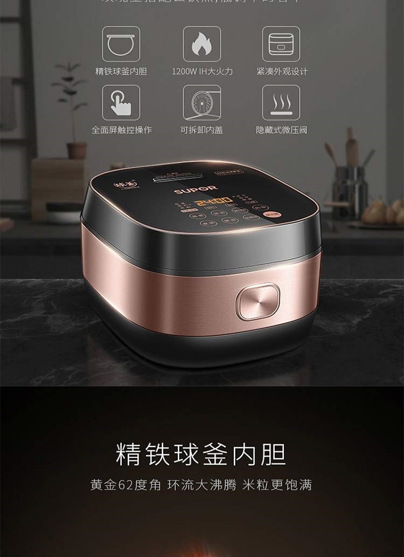 苏泊尔 ZMD安心系列 电饭煲电饭锅IH电磁加热智能预约4L电饭煲触摸操控精铁球釜内胆家用智能苏泊尔电饭煲SF40HC32