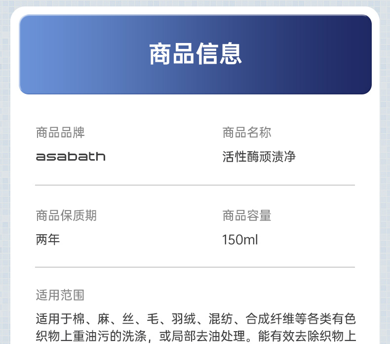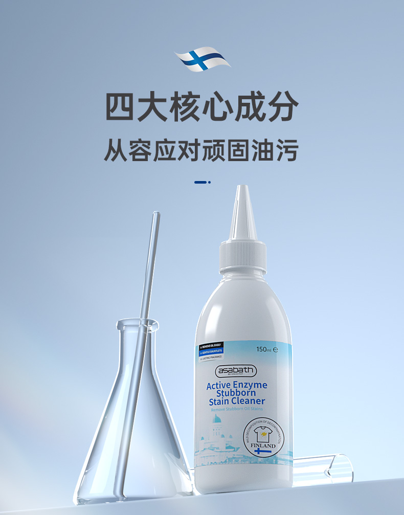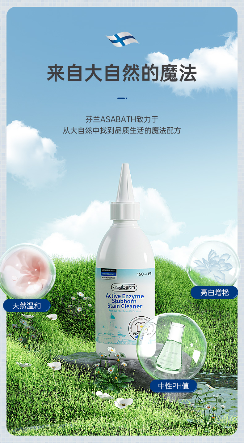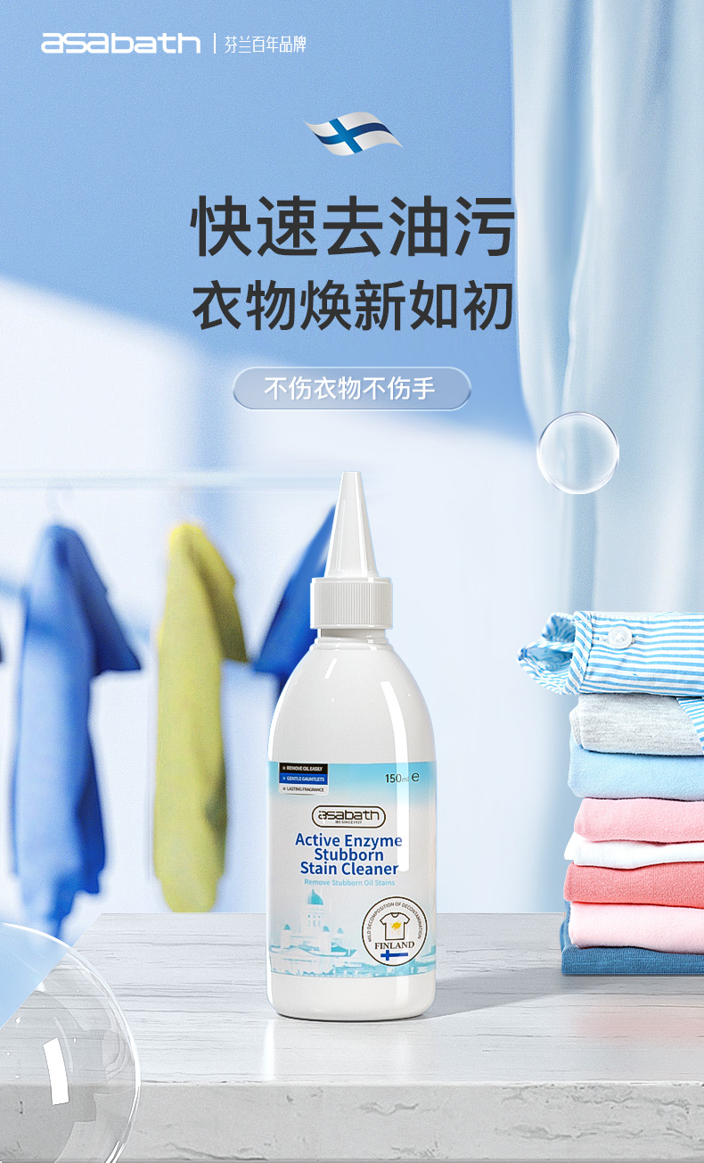 春节不打烊【芬兰百年品牌】asabath·活性酶顽渍净 强力瓦解6大顽固污渍 天然植萃配方 温和安全 全衣物面料适用 不伤色 150ml/瓶