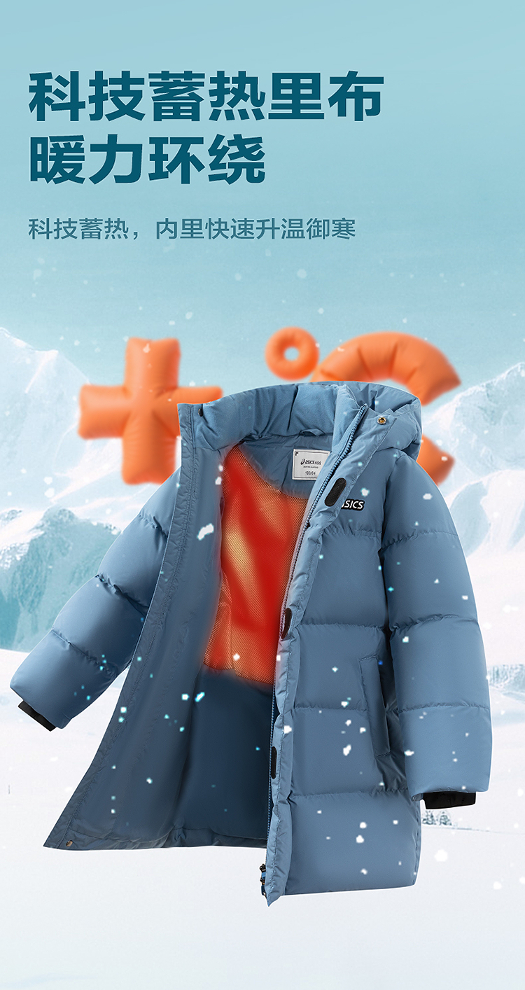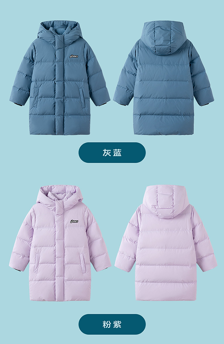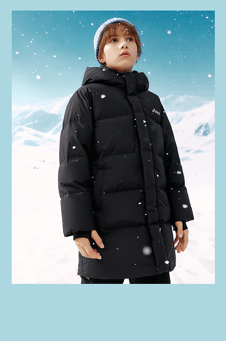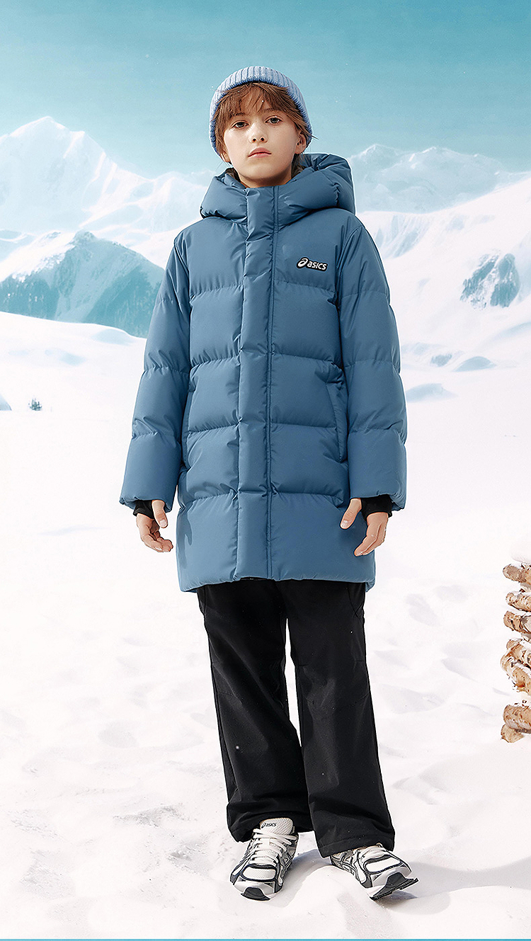 ASICS/亚瑟士童装25年冬季儿童中长款羽绒服蓬松有型加厚保暖防水