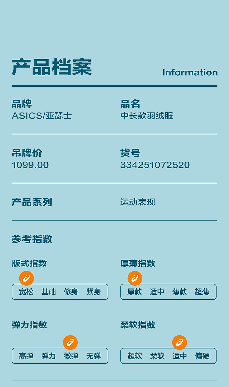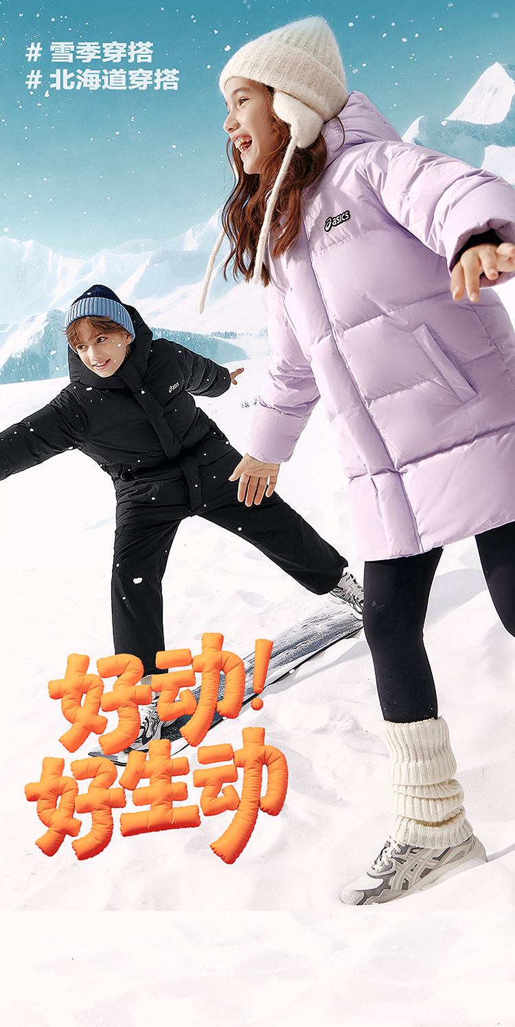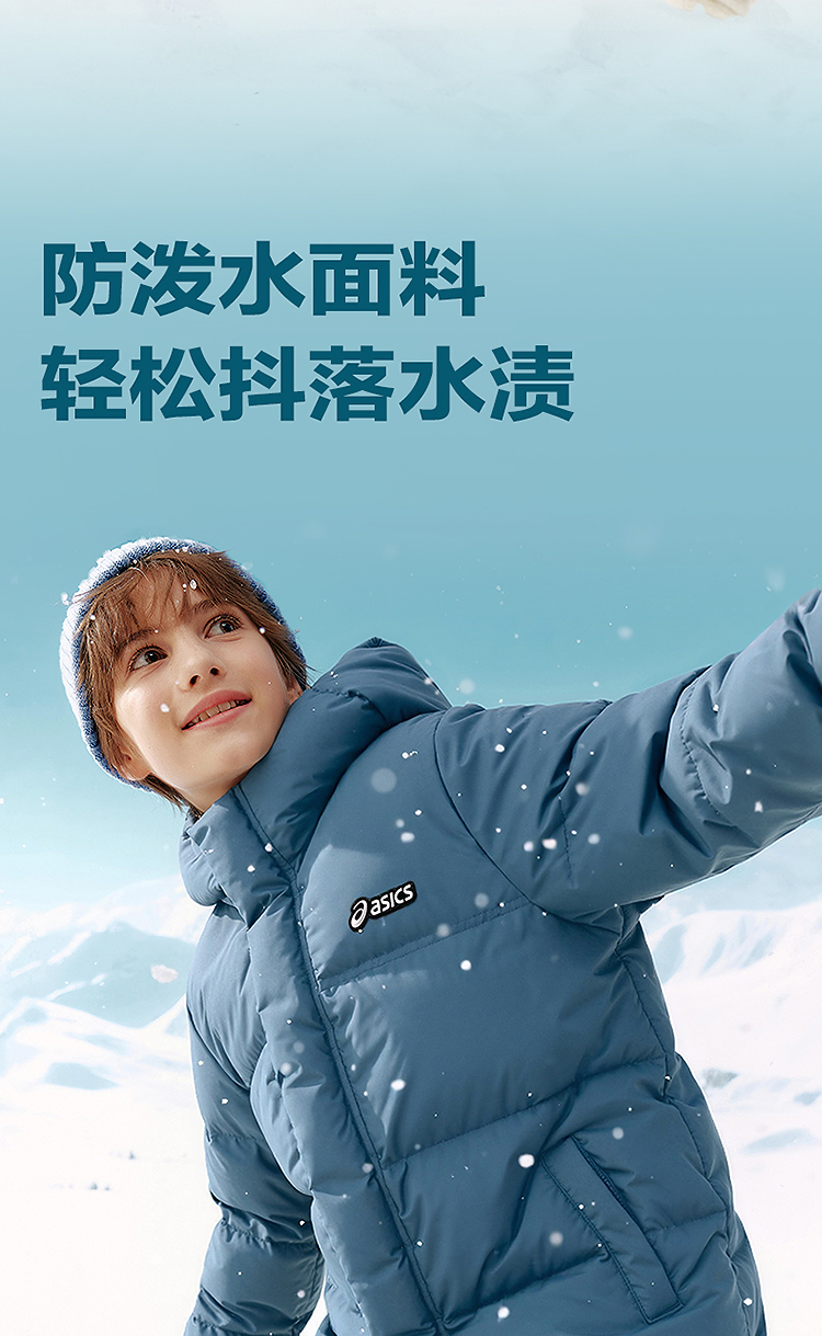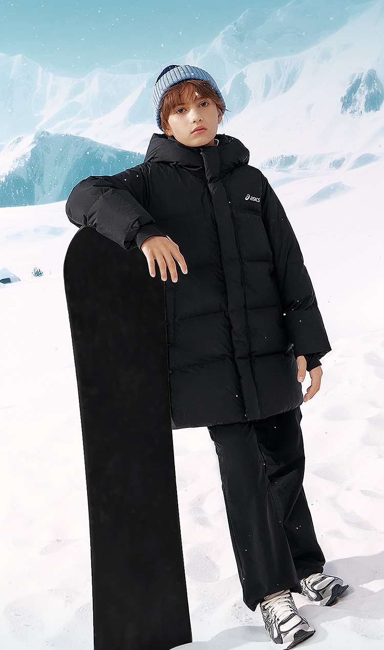ASICS/亚瑟士童装25年冬季儿童中长款羽绒服蓬松有型加厚保暖防水
