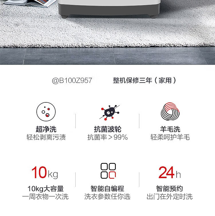 统帅(Leader)海尔出品 10公斤 大容量 全自动波轮洗衣机 预约 智能自编程 羊毛洗957