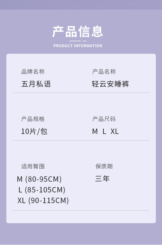 1条不到一块钱! 母婴品牌 安全可靠 五月私语女性卫生裤(安睡裤) ◾有码数可选 胖胖女孩也能穿! ◾姨妈期有它 安心滚着睡一整晚 ◾绵柔云朵触感 独立包装干净卫生