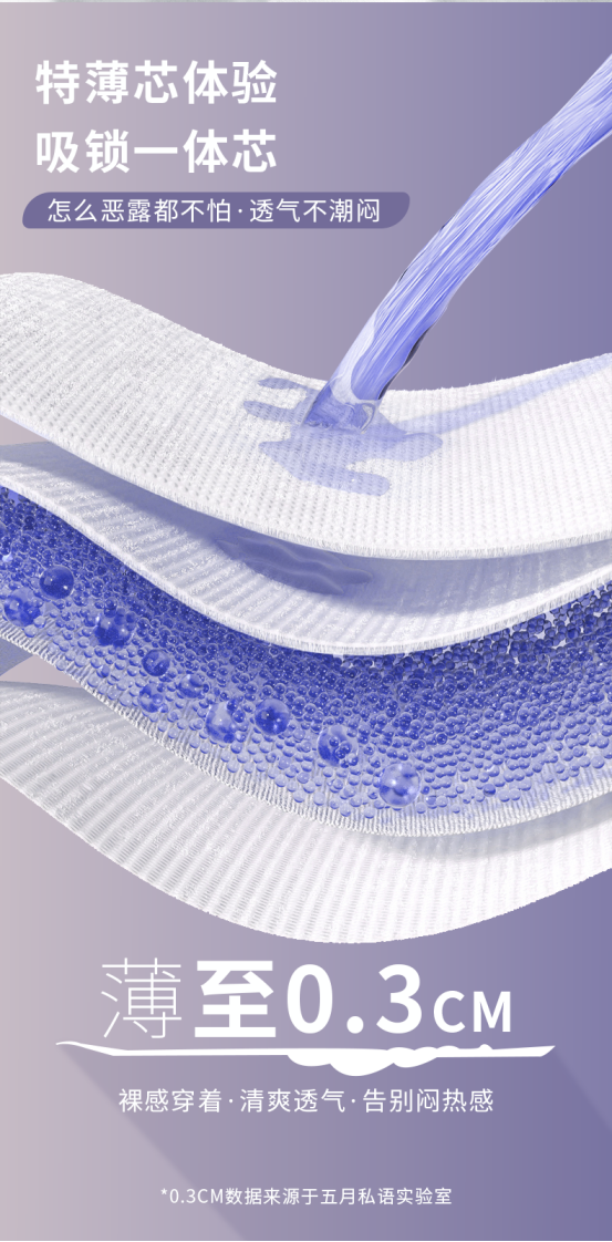 ◆高效锁水设计 超强吸收,高效锁水,快速凝固,干爽不返渗。