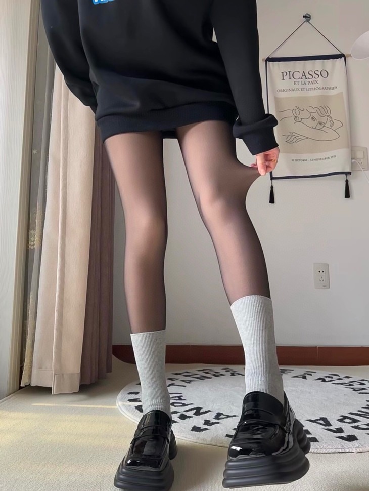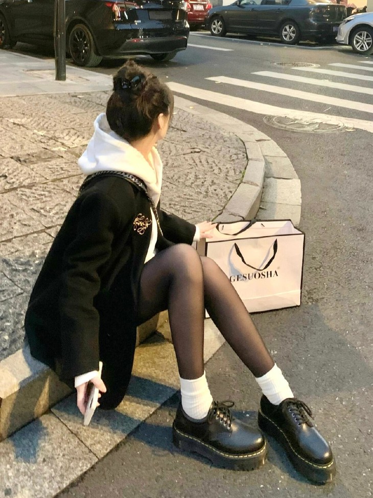 今年也是应了大众姐妹的要求 给你们安排上了黑透肤的颜色 这么自然的加绒黑丝谁能拒绝呢! 慕了慕了!!性感魅力值拉满 幂式搭配我悟了~ 直接就是oversize+厚底靴 最后再来一条辣妹必备的黑透肤光腿神器