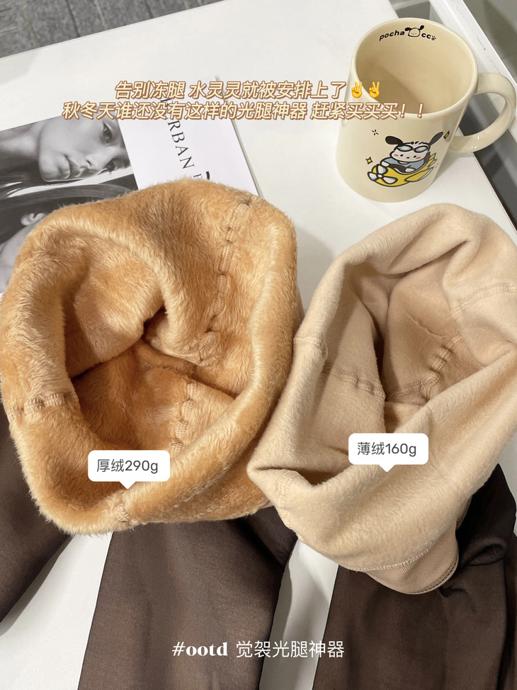 醉醉让我心动的是 这光腿神器完全看不出像是加绒的 一点不显臃肿还hin显瘦 它的内里绒毛材质细腻柔软,很软很暖和 高密度面料下,帮助隔绝外部冷空气 储存身体散发的热量,蓄热又保暖 冬天穿也不怕寒风嗖嗖往里钻