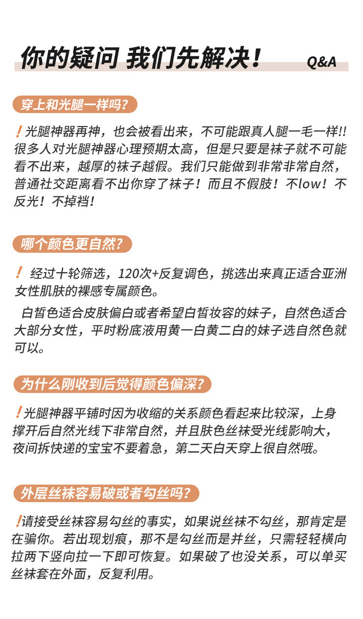 也正是因为这种工艺造出来的细腻 所以穿上就像往腿打了层粉底液一样 腿上的暗沉不均匀、磕磕碰碰的淤青、鸡皮,通通一键磨皮 骨骼感清晰可见、不假肢,完完全全就像我们天生的美腿颜色一样 就算crush面对面 都发现不了你穿了光腿神器! 真的值得所有姐妹去试试!!