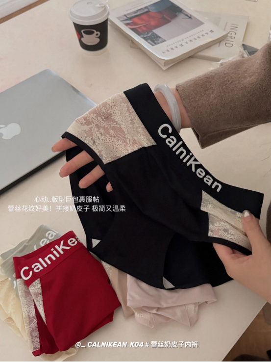 🌈【CalniKean蕾丝奶皮子内裤K04#】蕾丝花纹好美,🌟拼接奶皮子,🥰极简又温柔。就跟牛奶一样丝滑细腻,🌈很难想象它多好穿!多舒服!