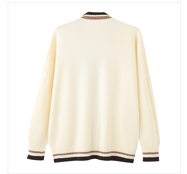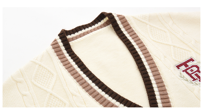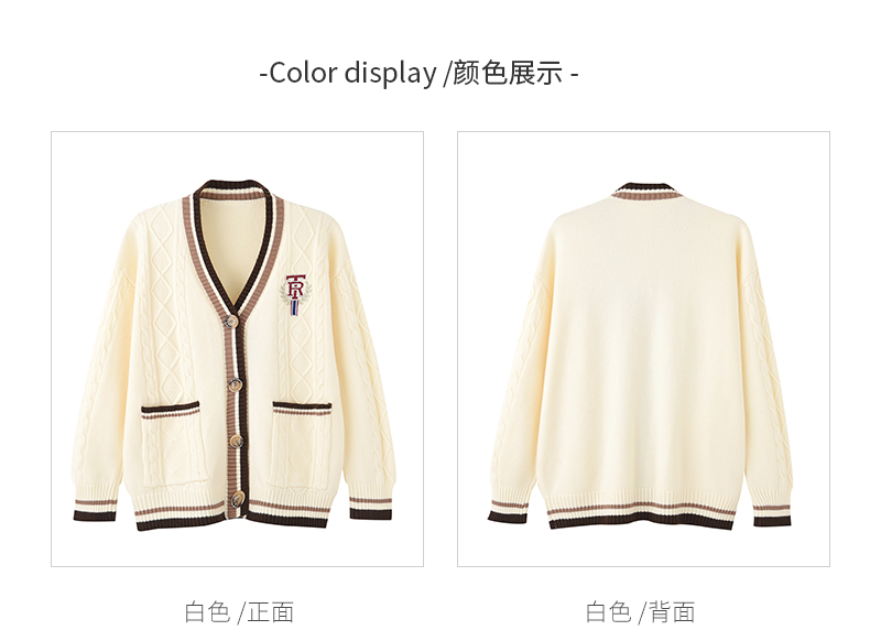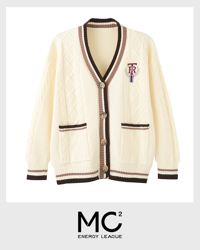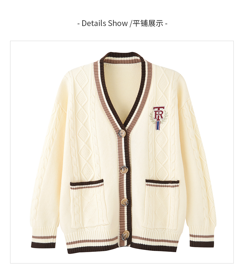 女装V领学院风字母刺绣毛衣开衫M2212362