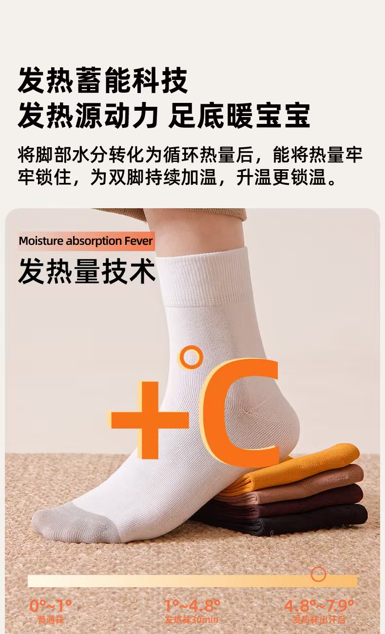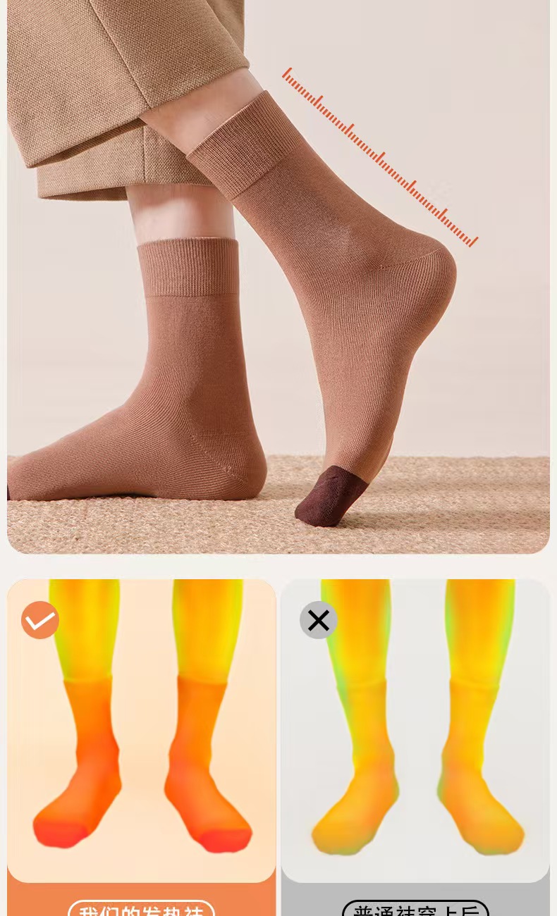 热卖!!秋冬男女必备发热中筒袜 发热纱厚款 + 10A 抗菌防臭 + 抗起球 穿久不变形