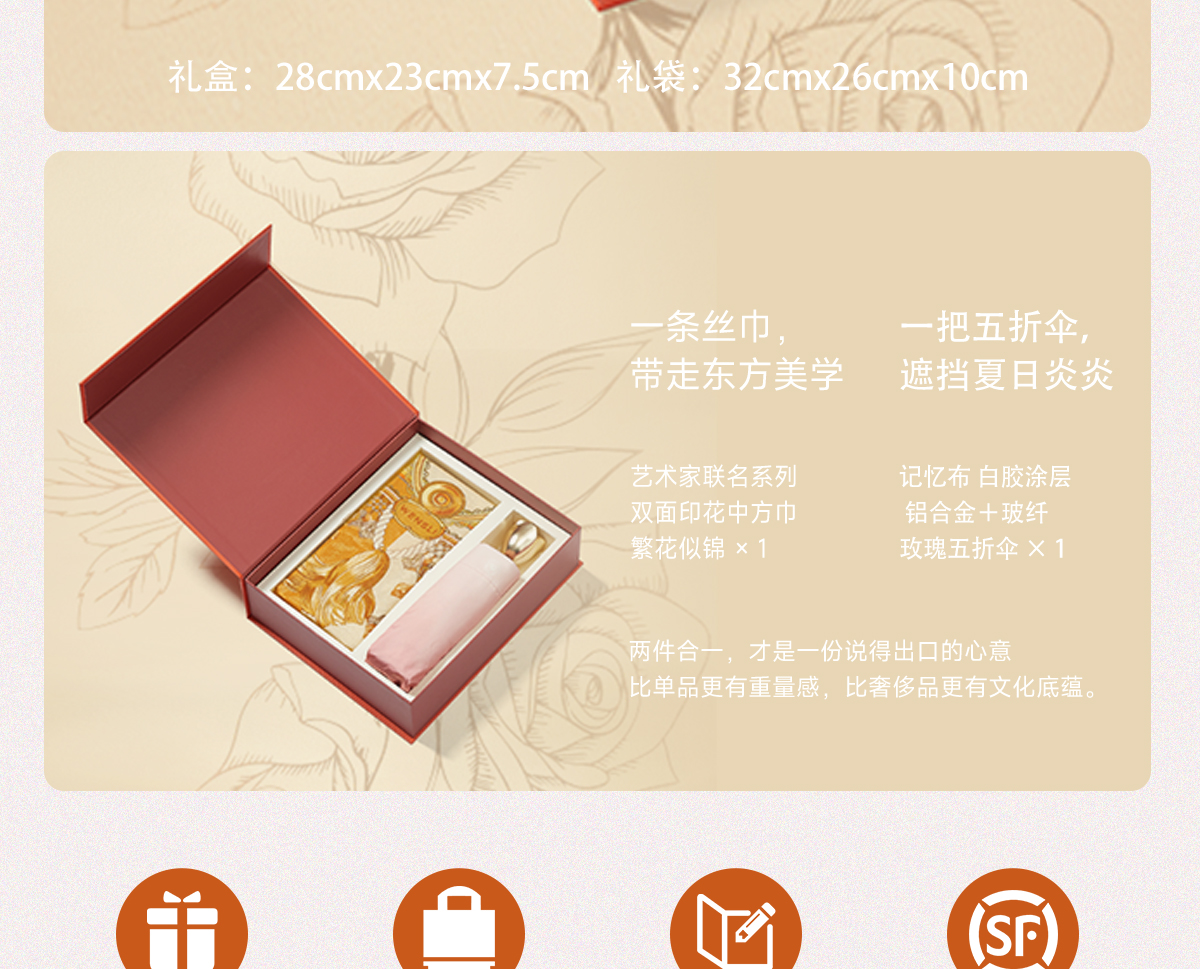 万事利《纯粹真我 ·绽放》丝巾伞礼盒(中方巾)