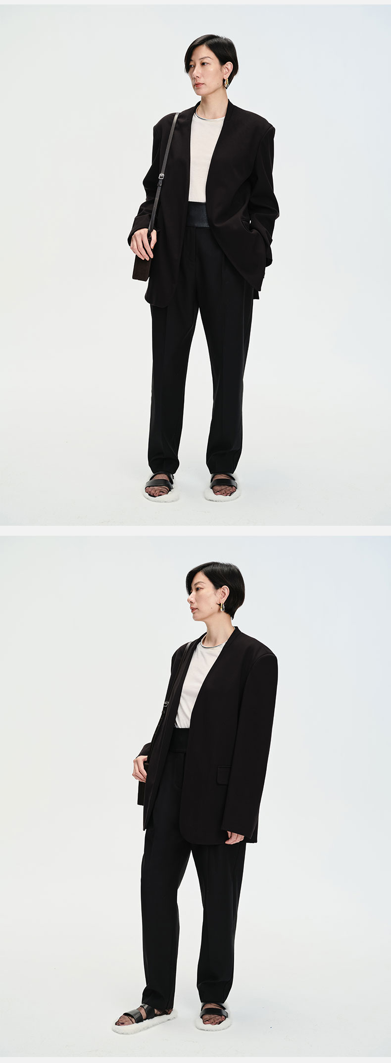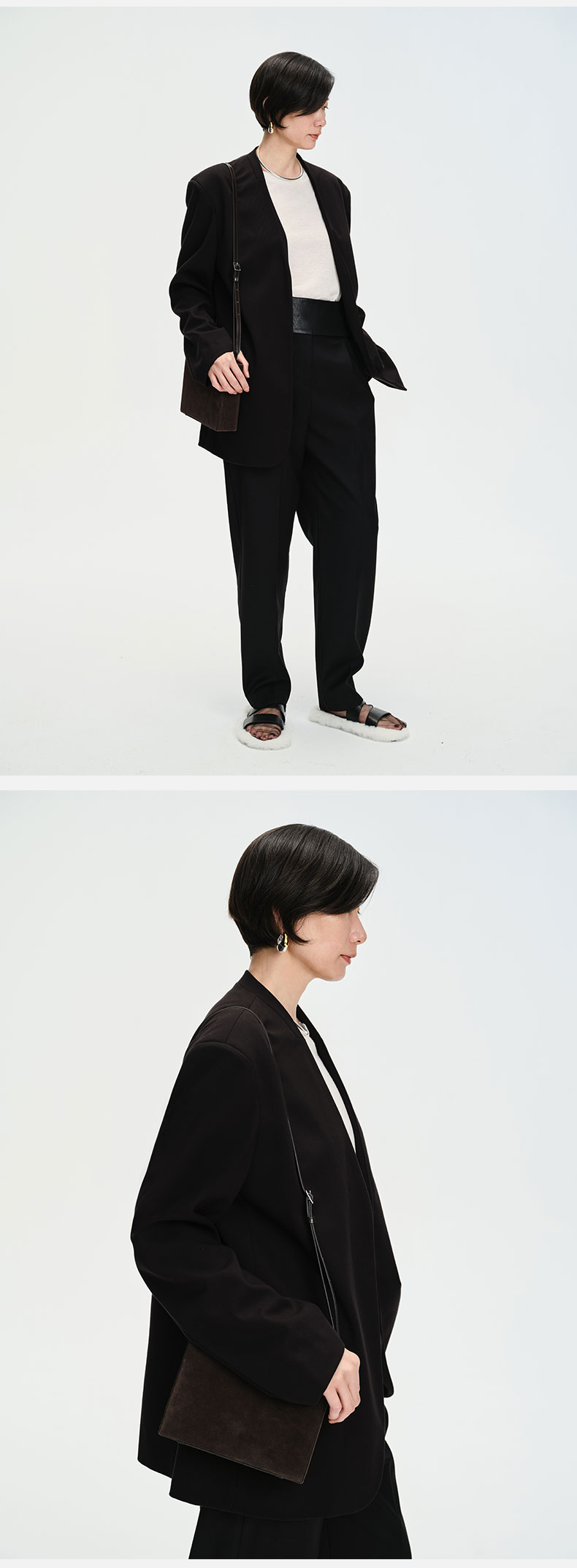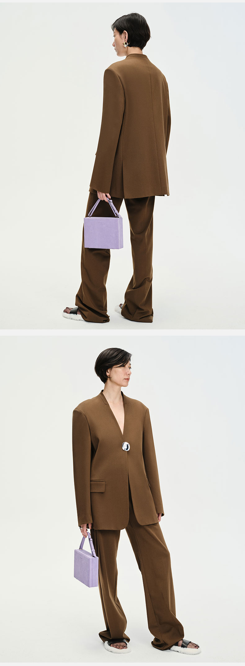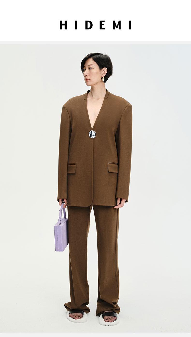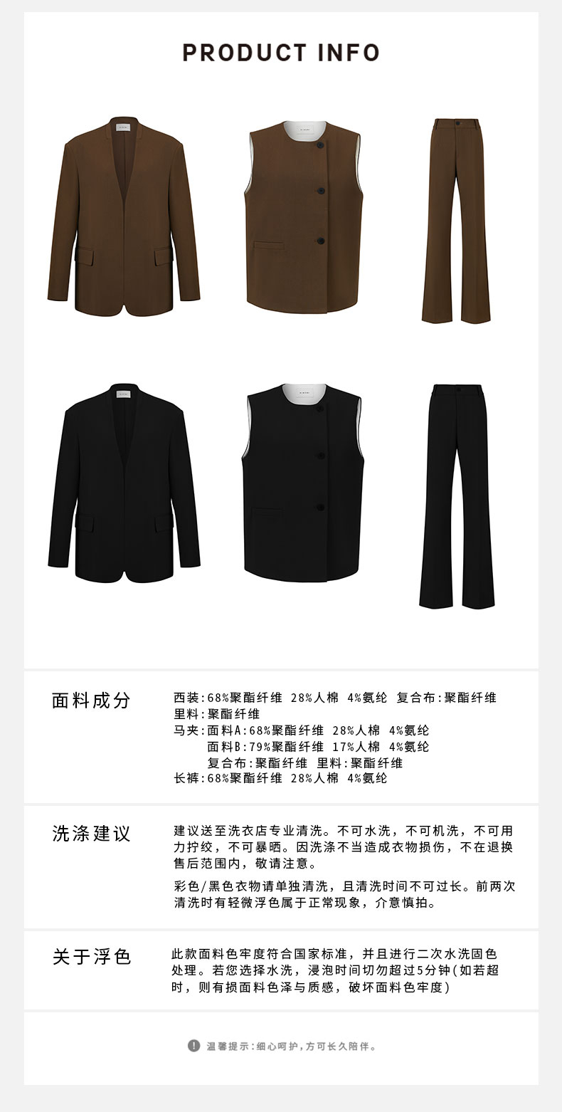 HIDEMI 简约廓形西装三件套西装/马夹/长裤 巧克力棕/黑色