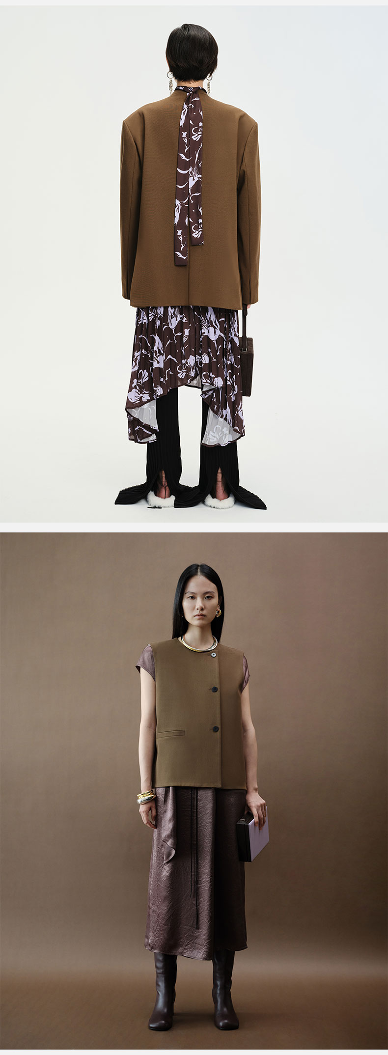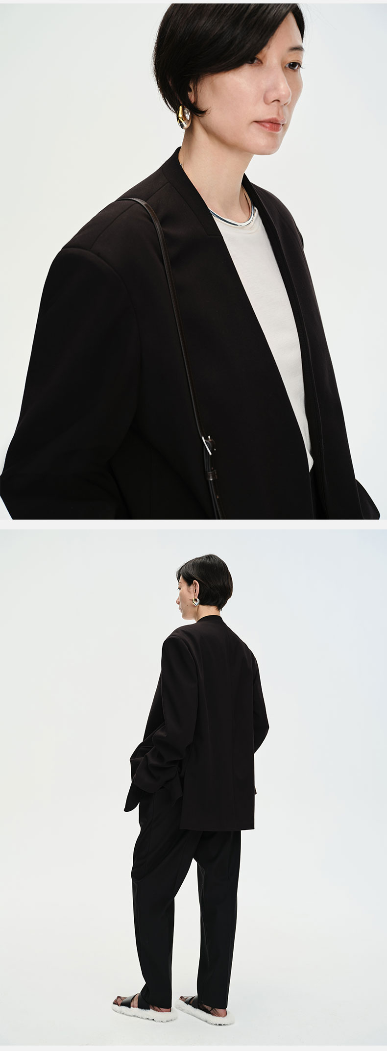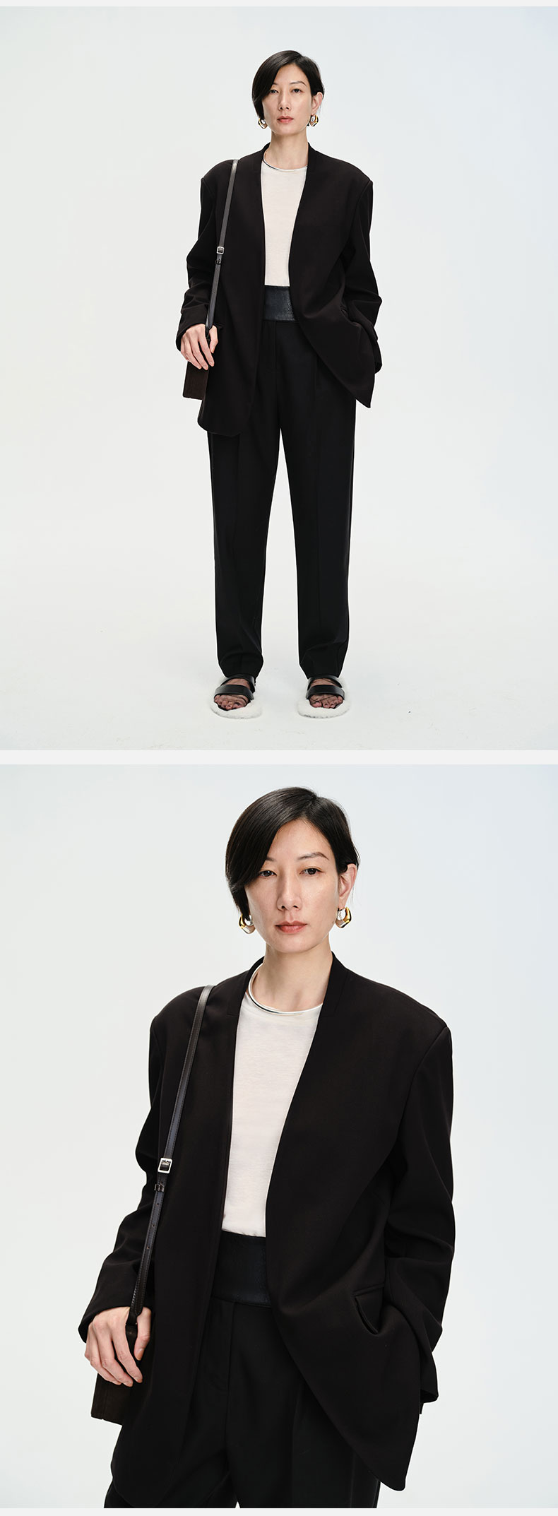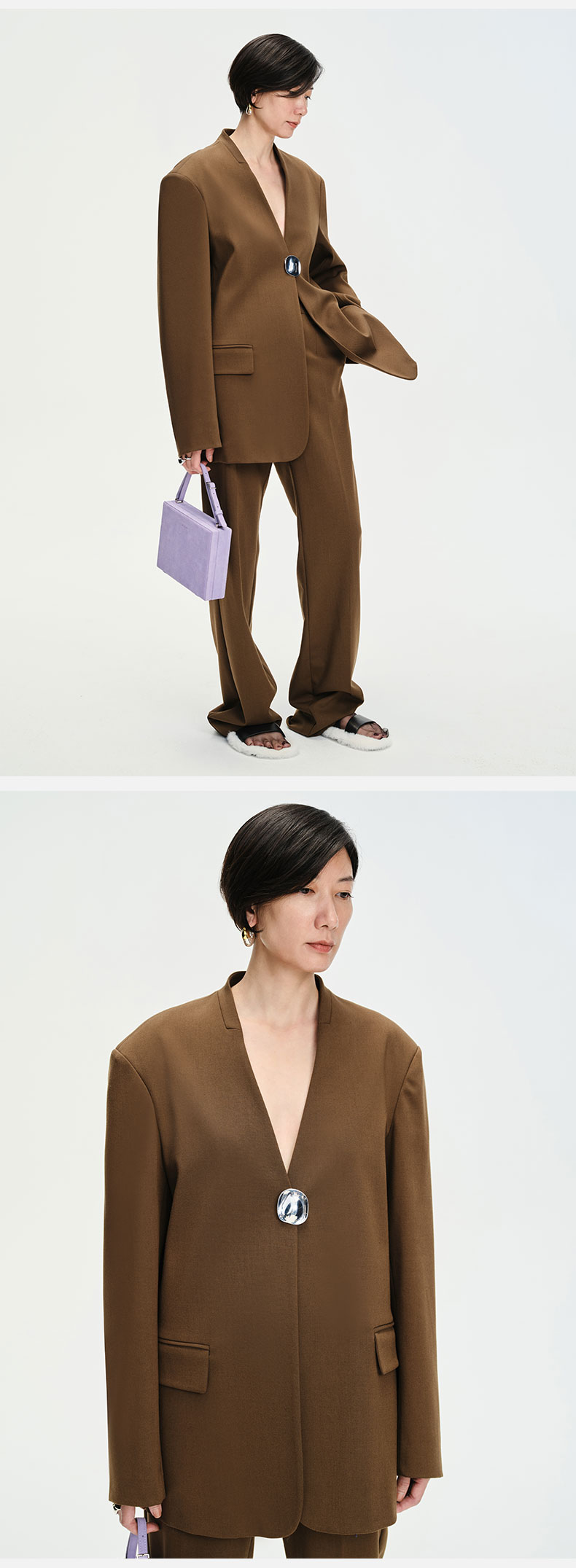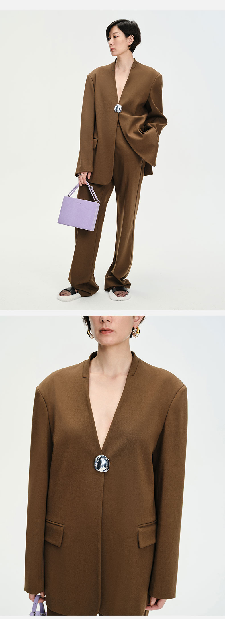 HIDEMI 简约廓形西装三件套西装/马夹/长裤 巧克力棕/黑色