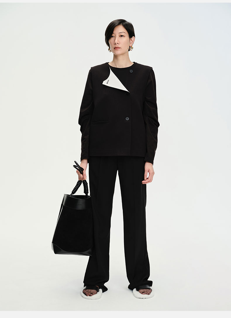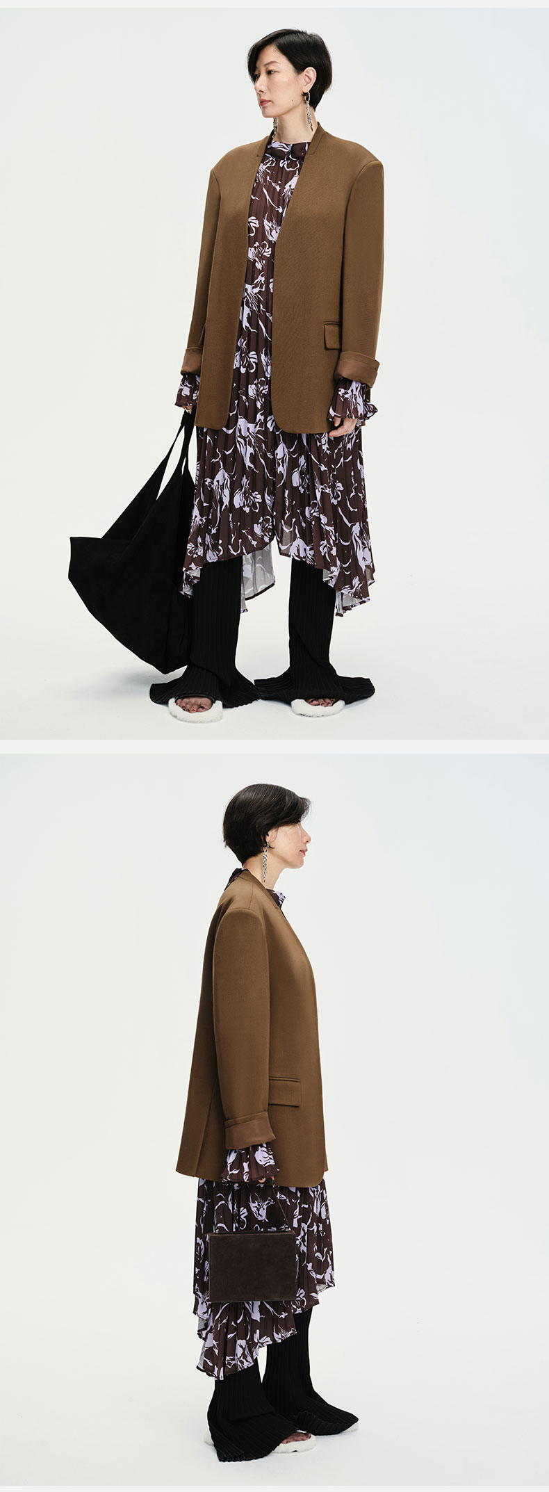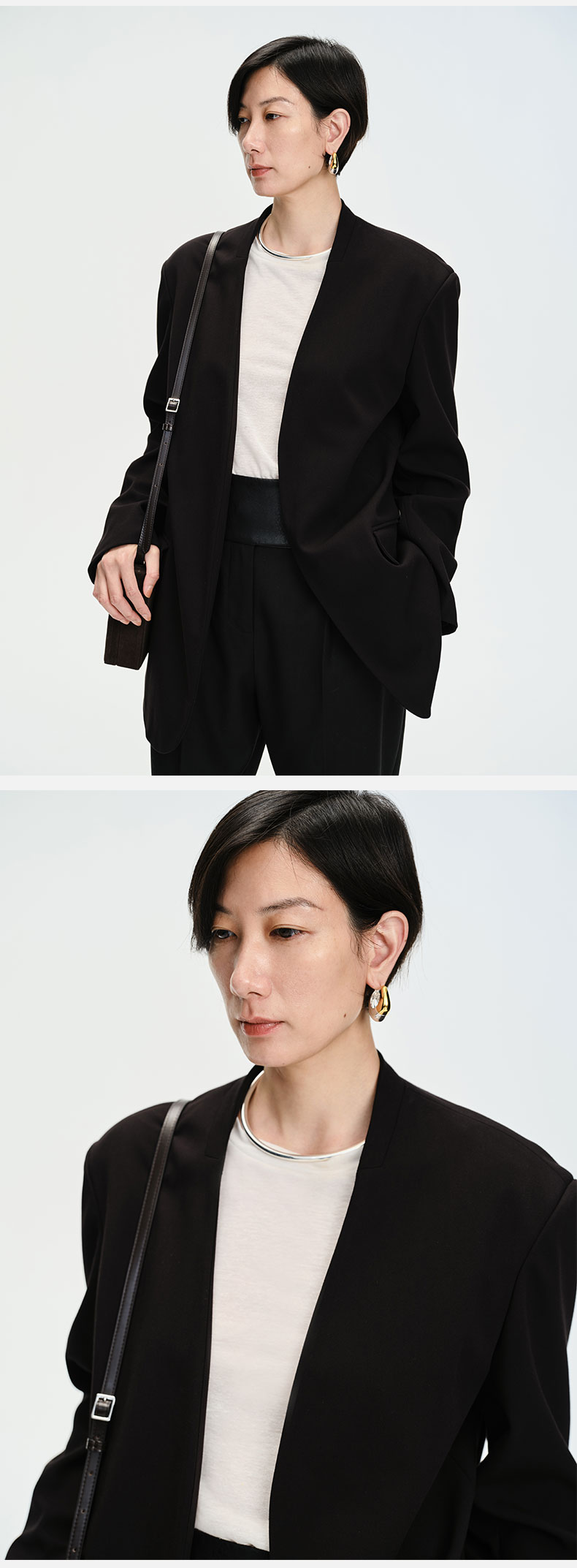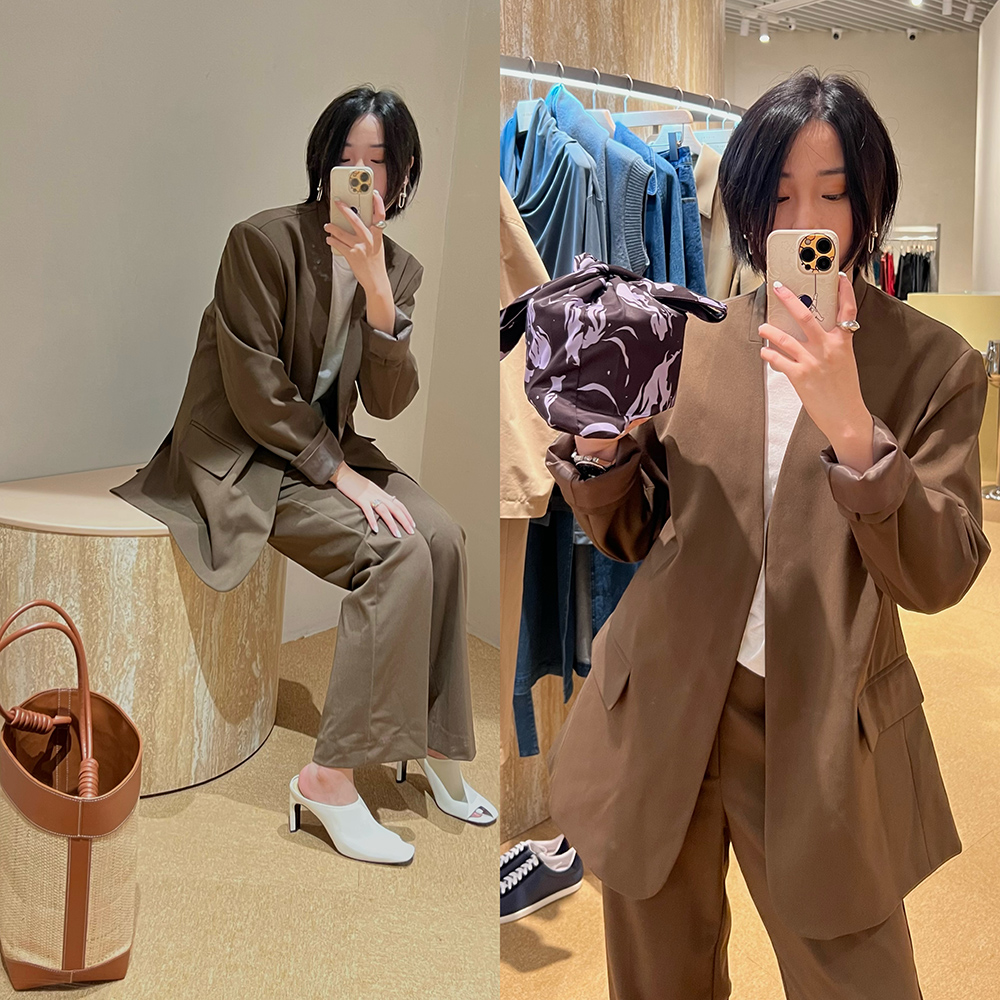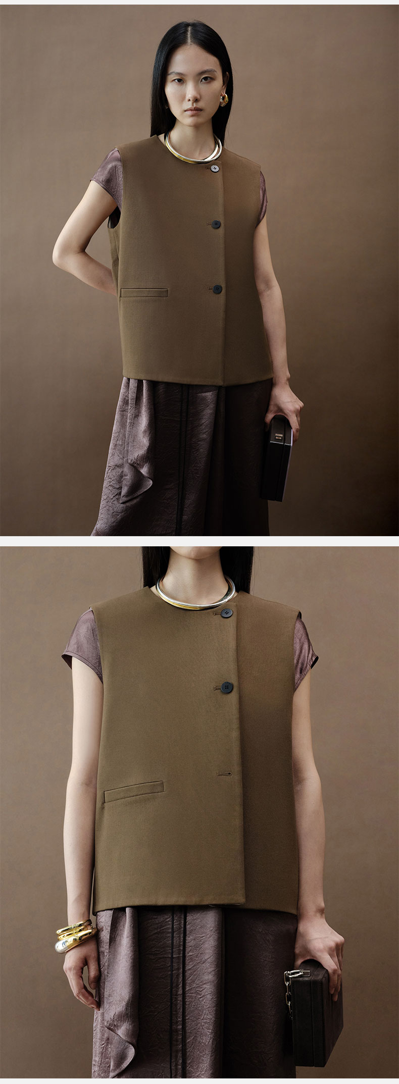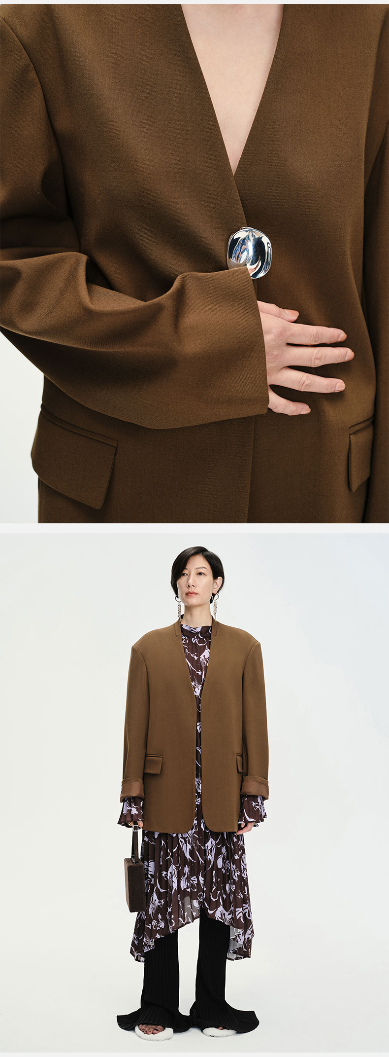 HIDEMI 简约廓形西装三件套西装/马夹/长裤 巧克力棕/黑色