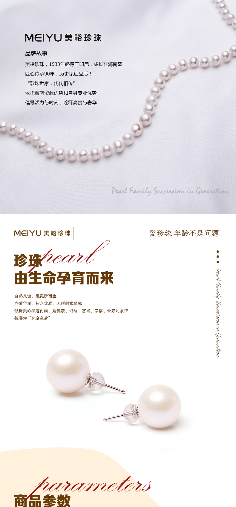 - 珍珠世家,代代相传。美裕珍珠,1933年起源于印尼,成长于海南岛。依托海南资源优势和自身专业优势,以经营南珠、南洋珠为主,专注于珍珠文化的挖掘和传播,把珍珠代表的爱意,永不间断地传承下去。