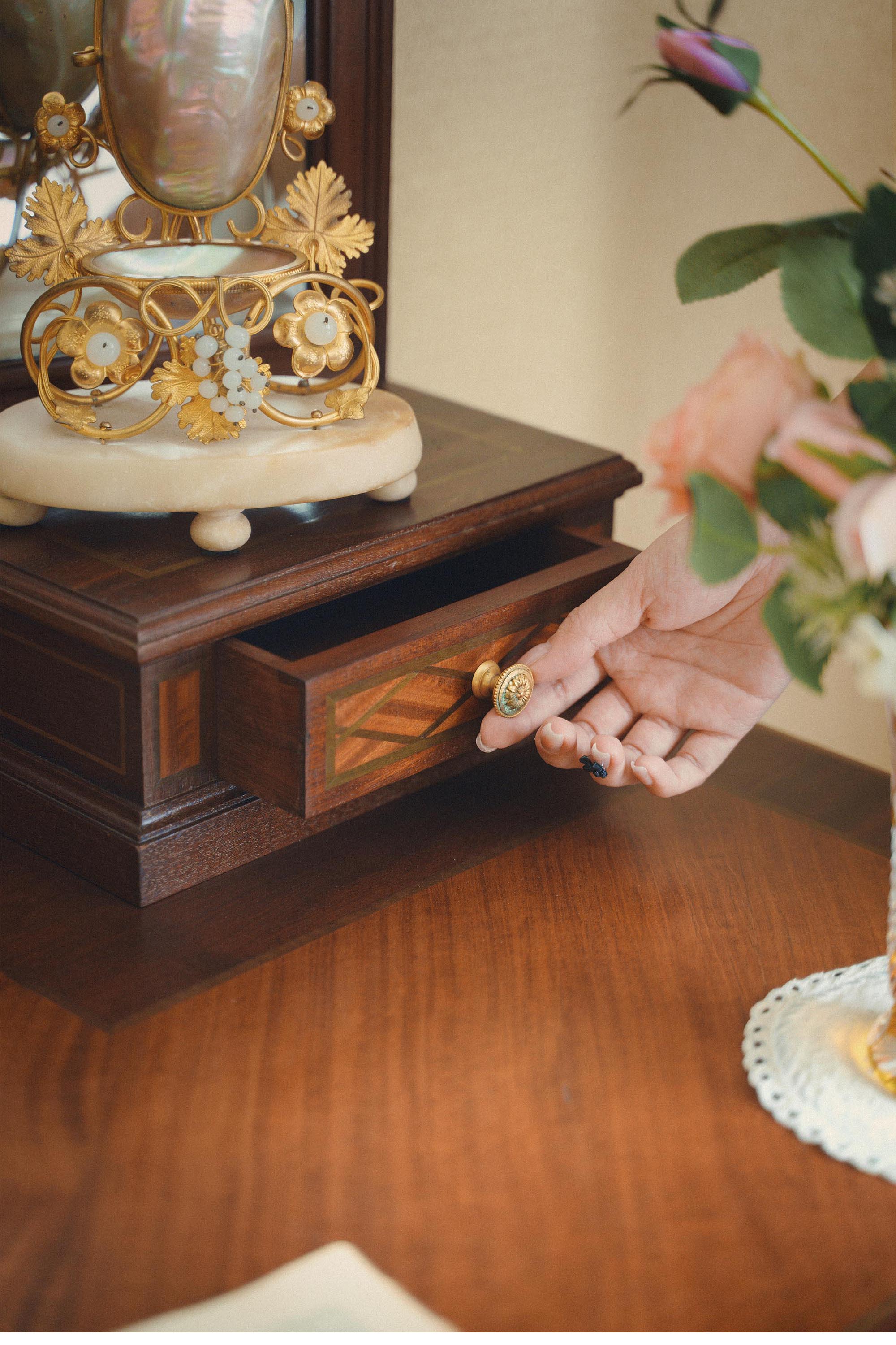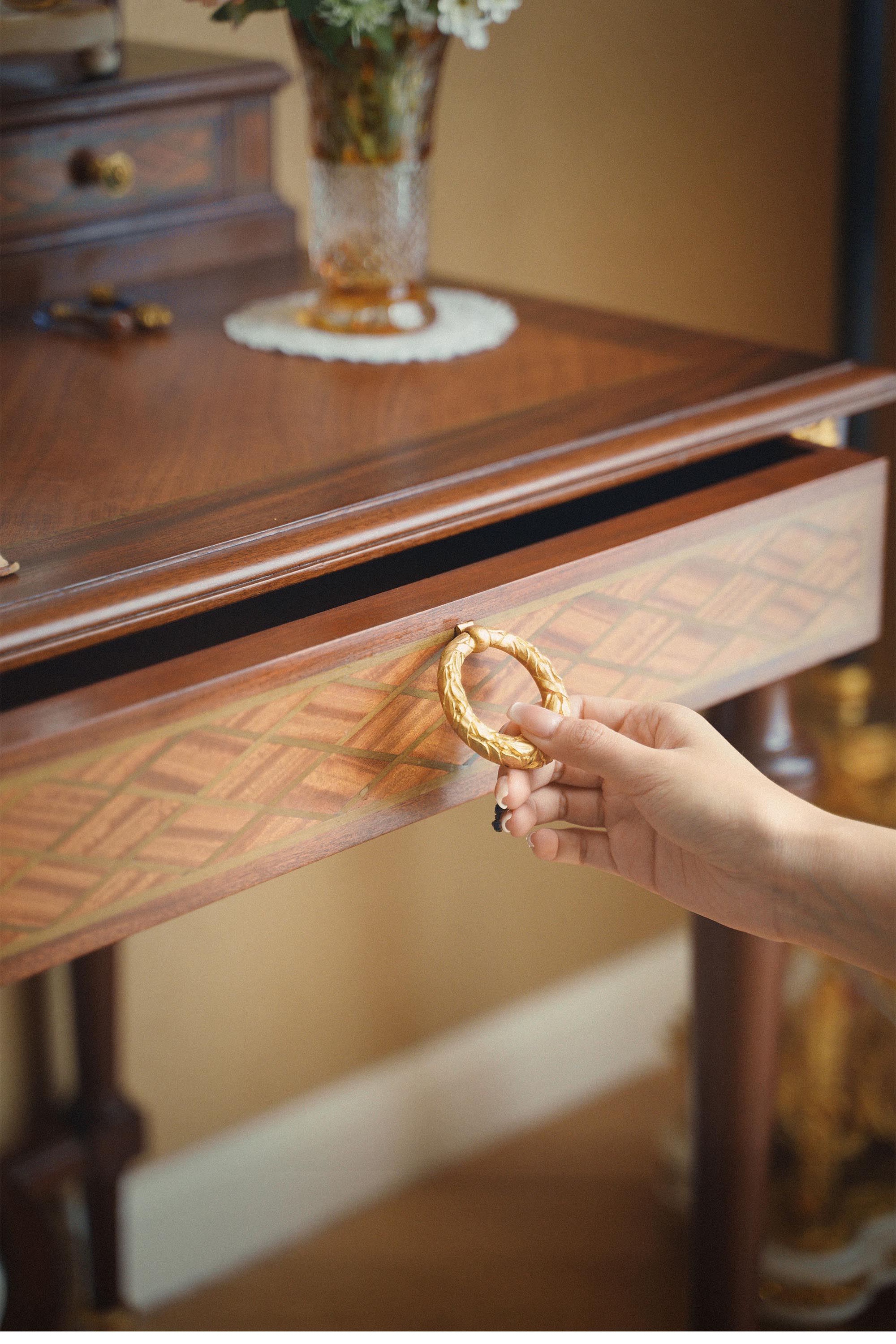 材质:桃花心木等,铜鎏金