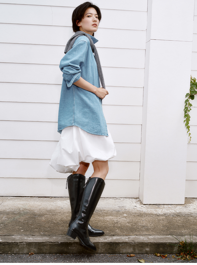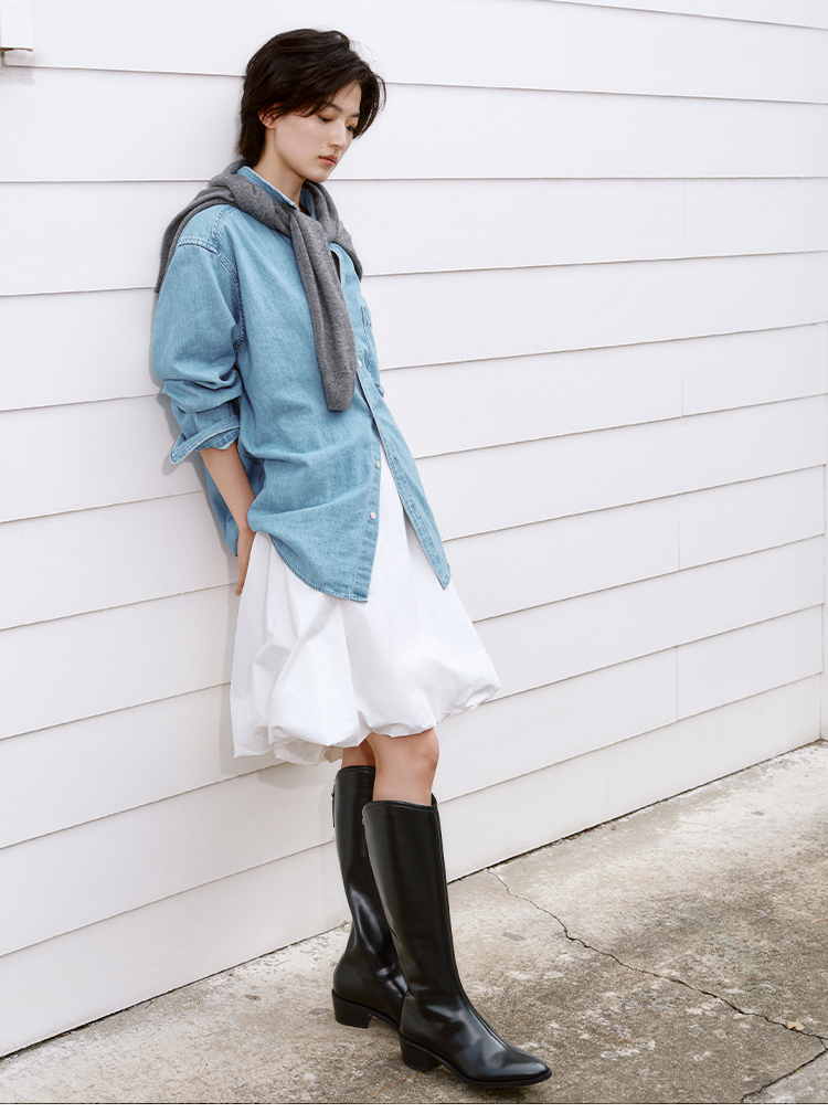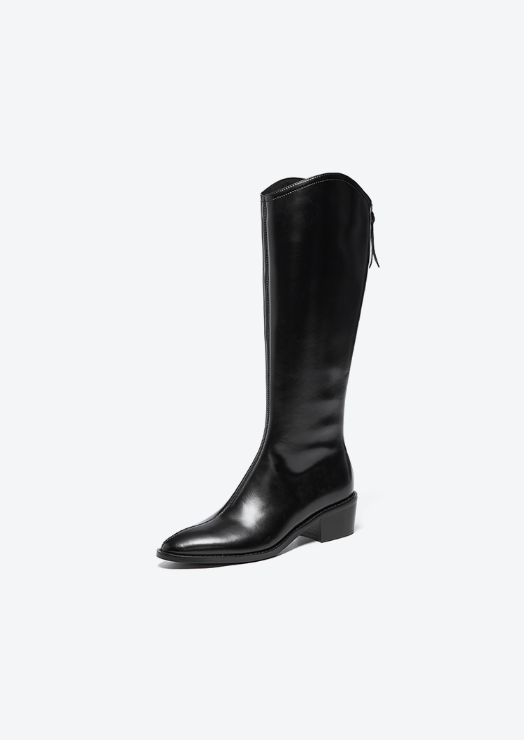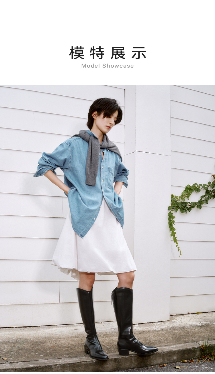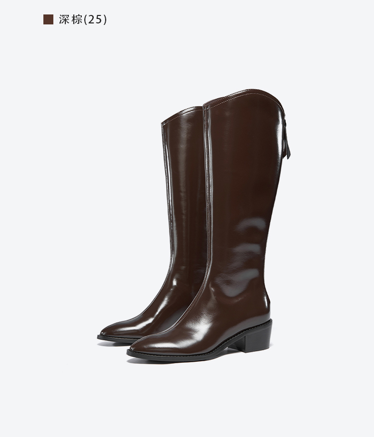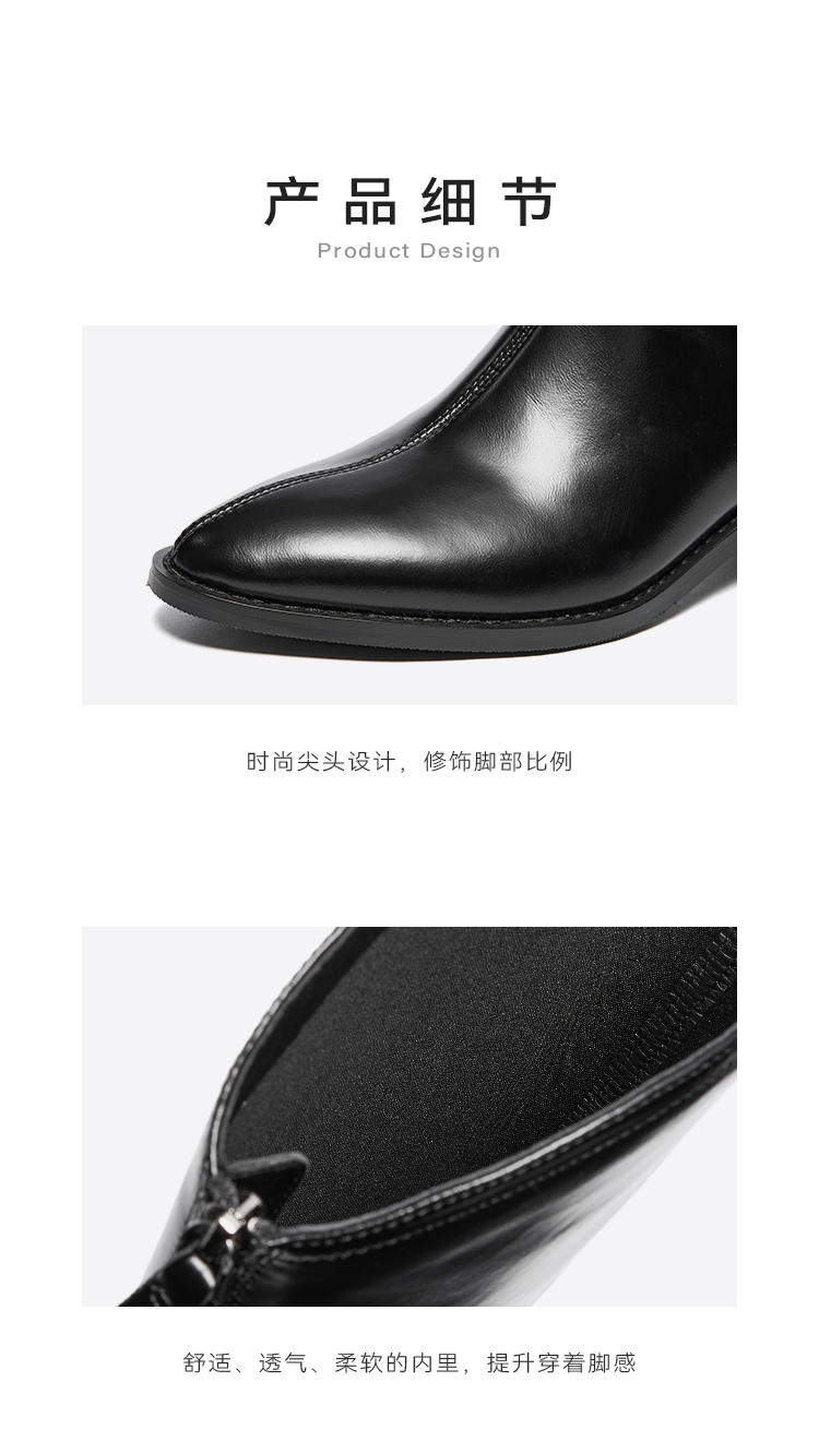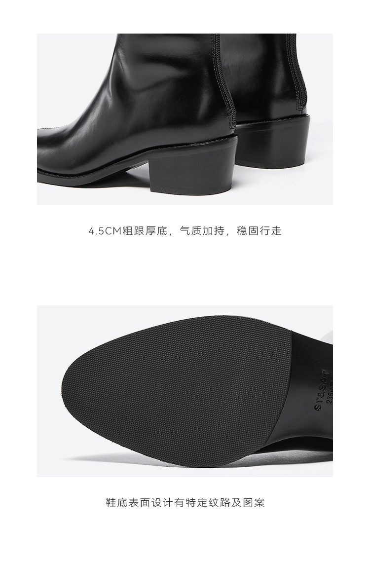 【绒里可选】星期六气质尖头V口显瘦粗跟长靴SSD4117498/SSD4119498