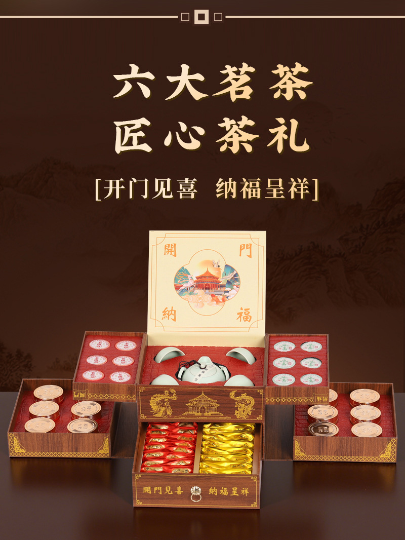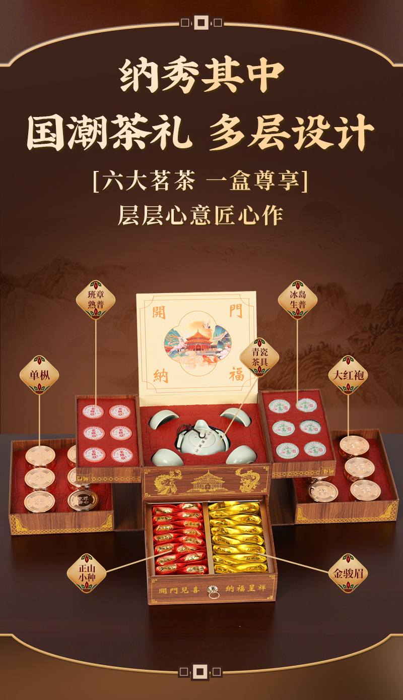 【一盒含六茗茶❗️金骏眉茶叶礼盒】精致茶礼“盒”您心意,源自核心茶区,每一口都是对舌尖的享受,金骏眉红茶大红袍茉莉花普洱熟茶茶叶,马年新年送礼好物年货礼盒L
