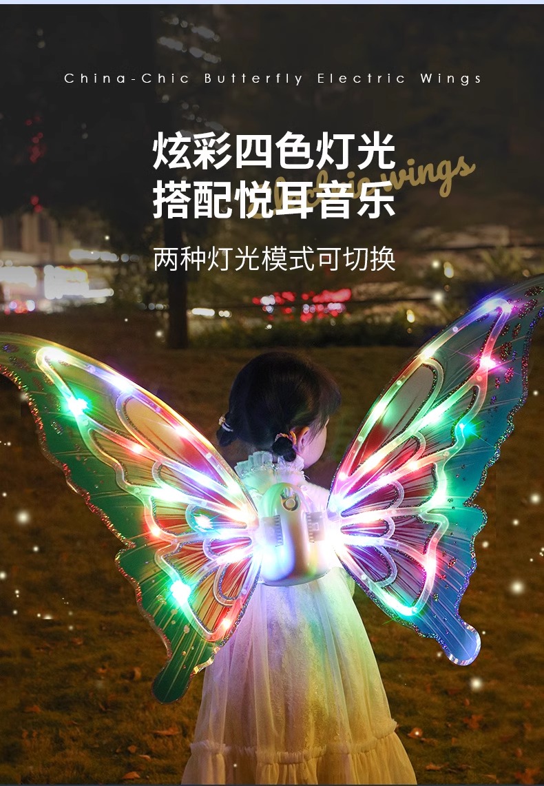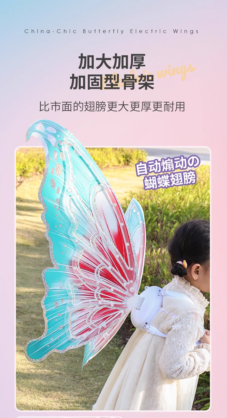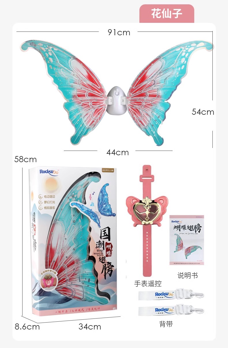 【正版花仙子升级国潮版 音乐可调节可关闭】会动的电动蝴蝶翅膀精灵羽翼天使背饰儿童发光玩具小女孩新年礼物