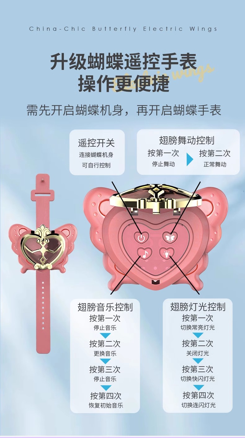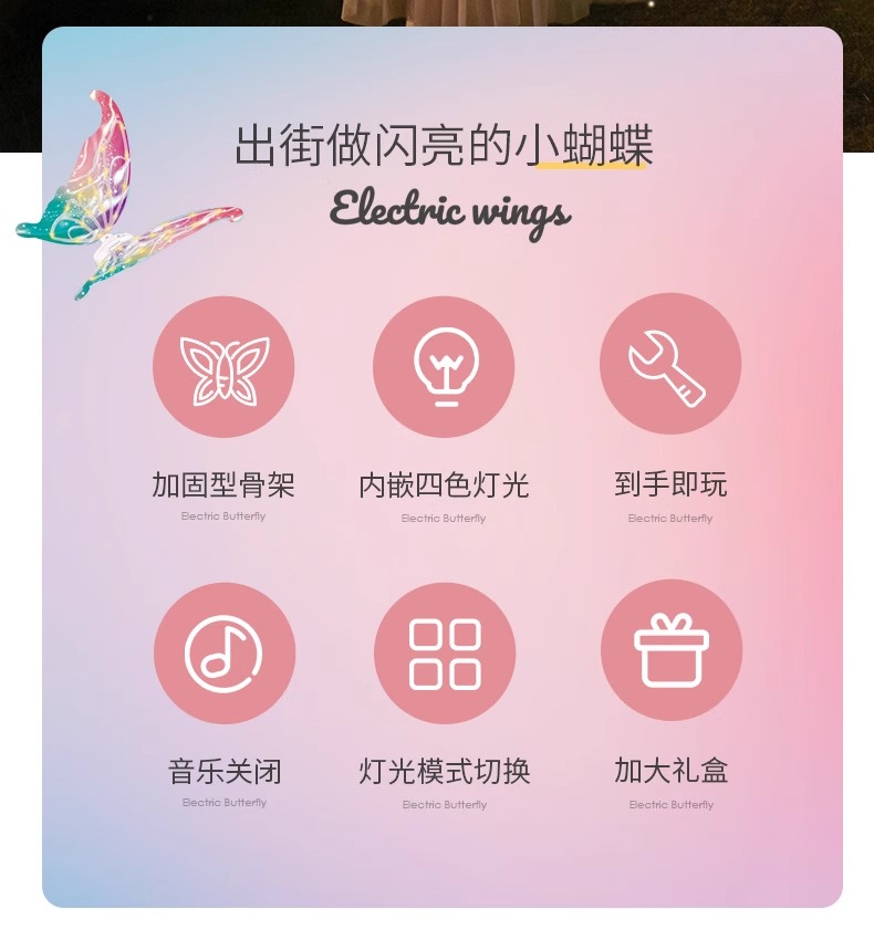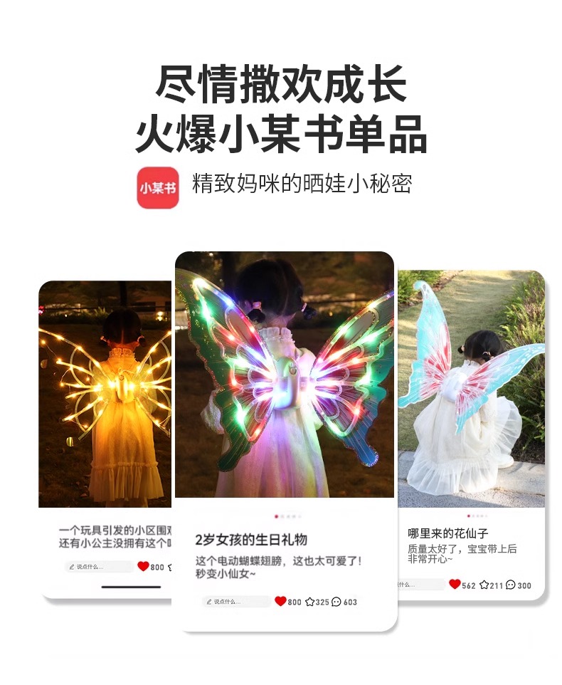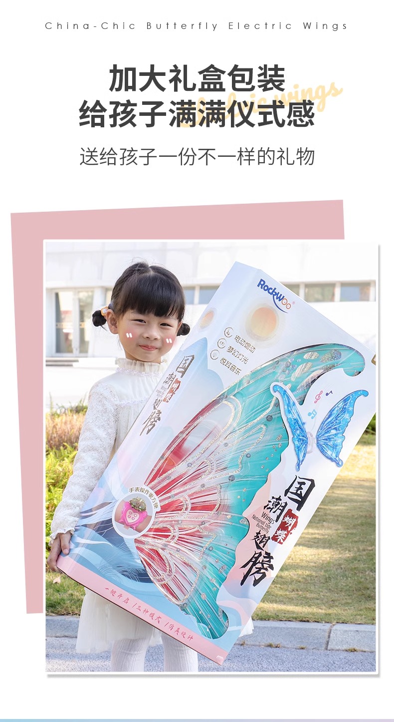 【正版花仙子升级国潮版 音乐可调节可关闭】会动的电动蝴蝶翅膀精灵羽翼天使背饰儿童发光玩具小女孩新年礼物