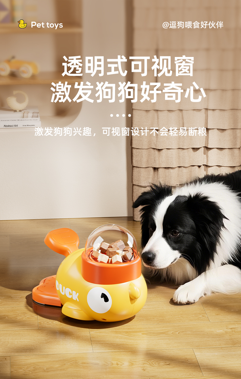 【旋转出粮,嗨玩一刻不停!】狗狗漏食器 益智小黄鸭脚踩投食器 小狗训导玩具 消耗精力冻干发射器-QA