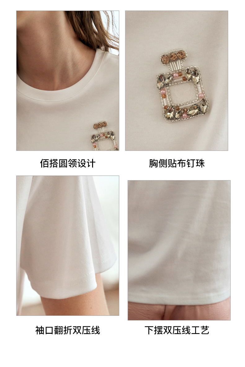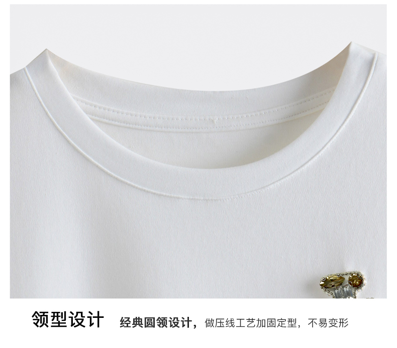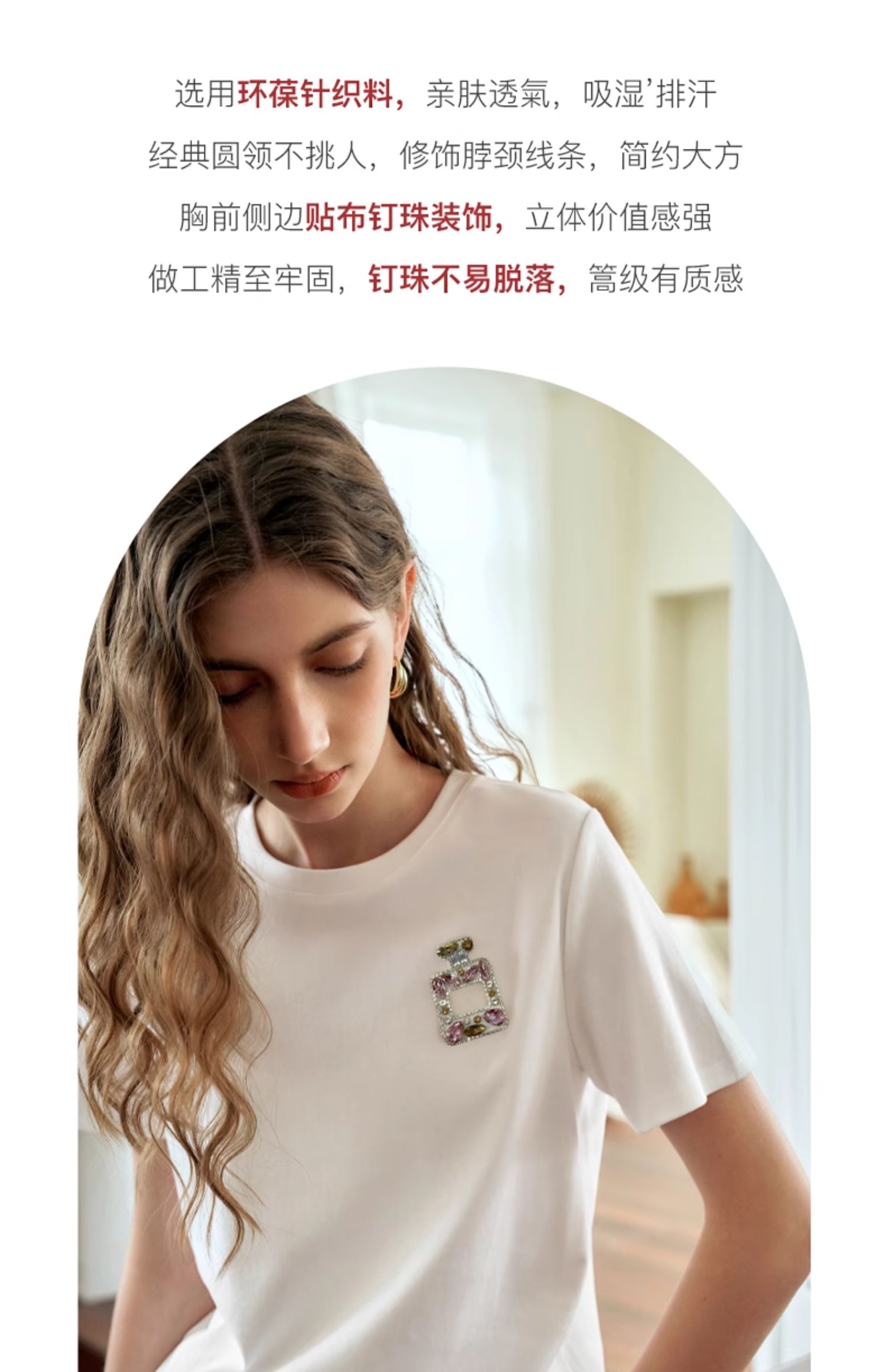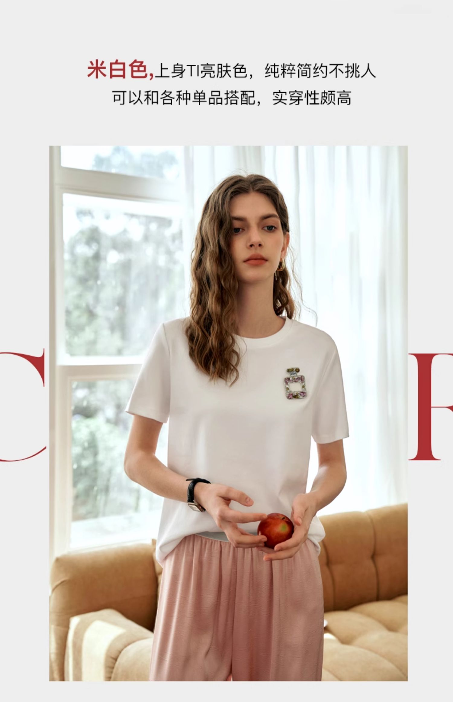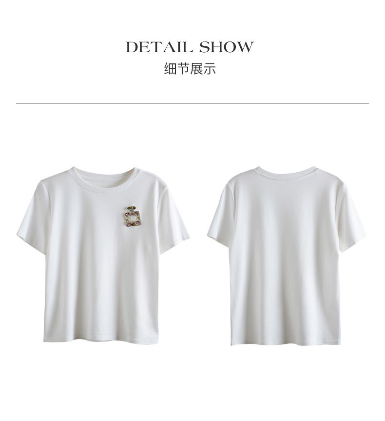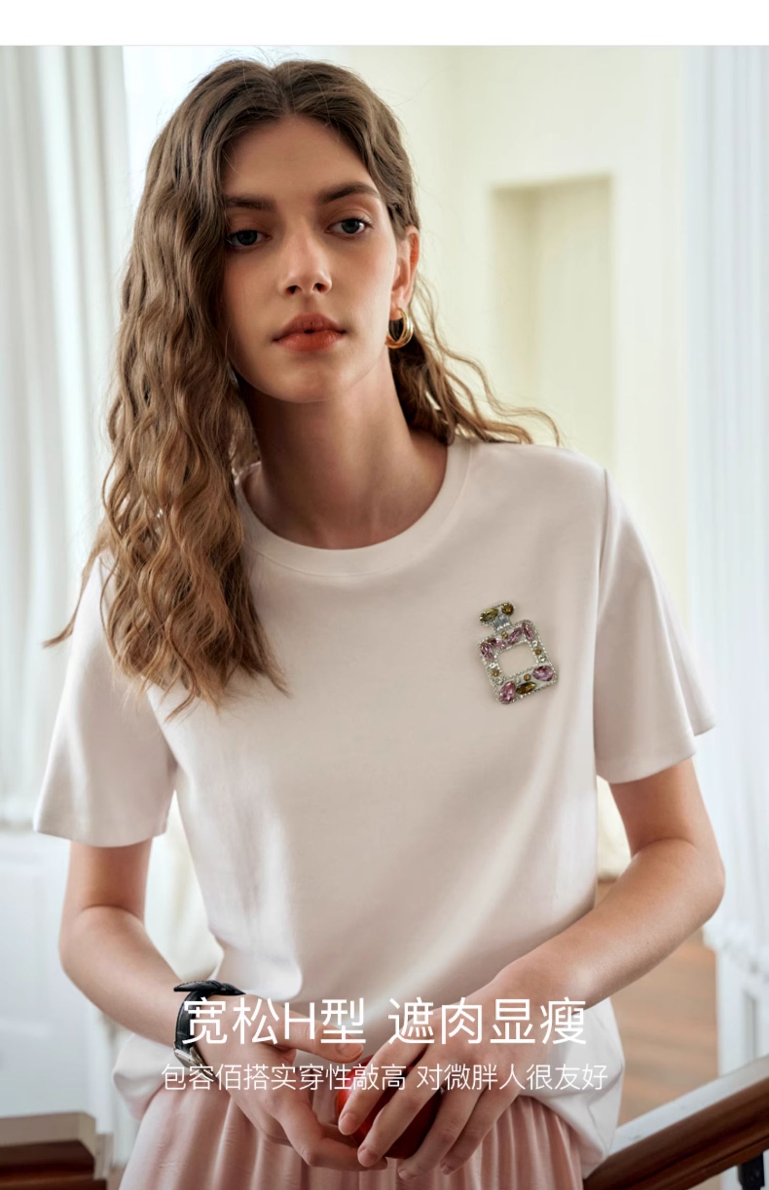 OLrain欧芮儿白色短袖T恤女夏季2024年新款时尚通勤刺绣圆领上衣