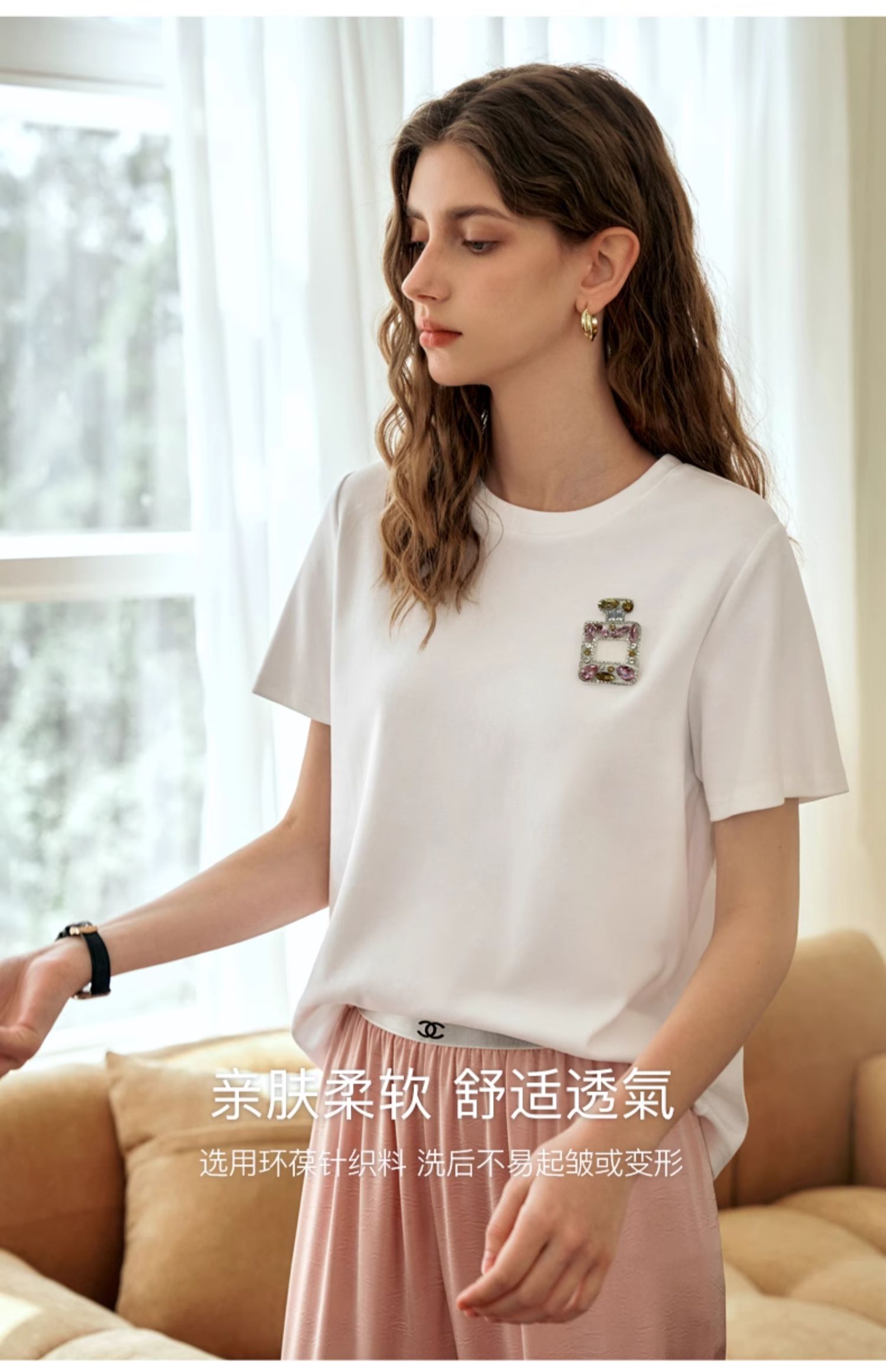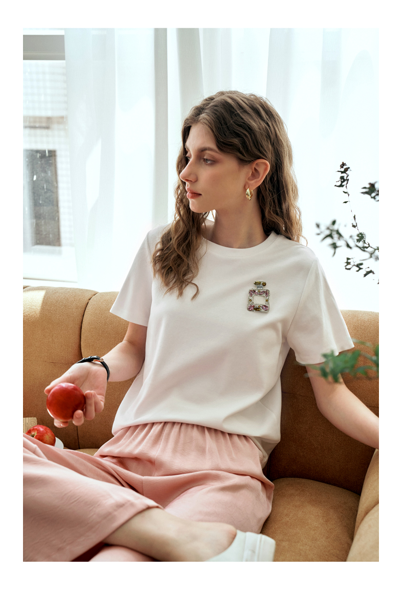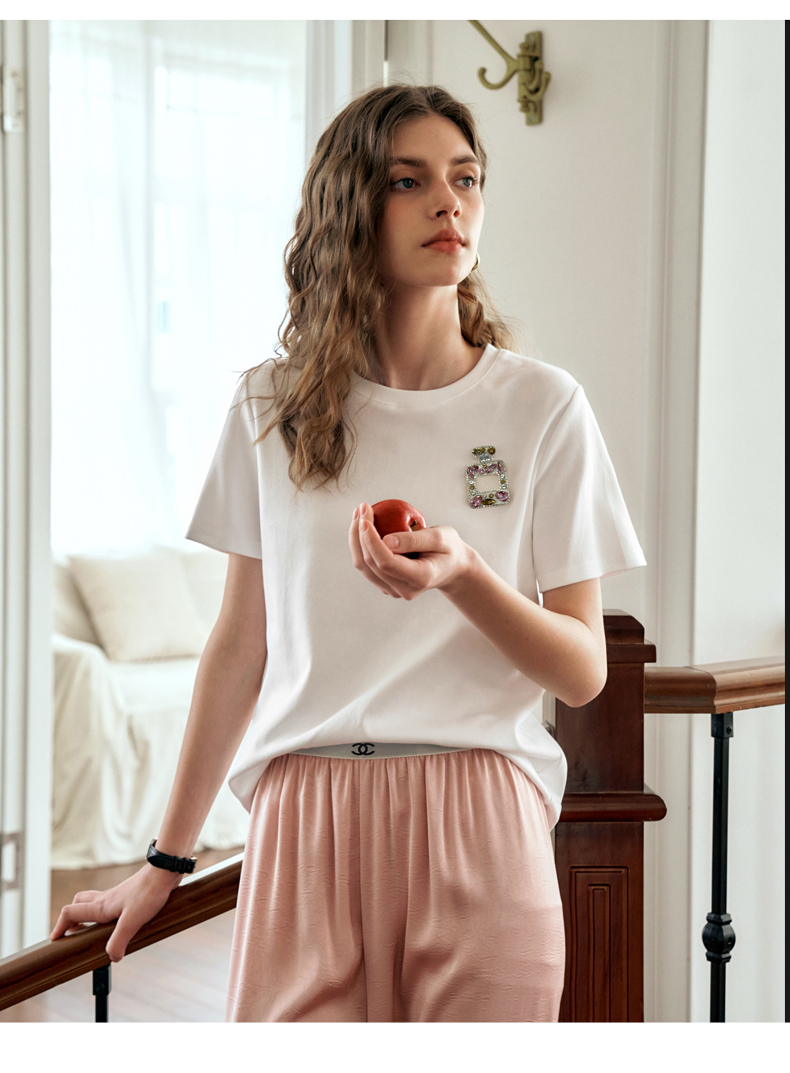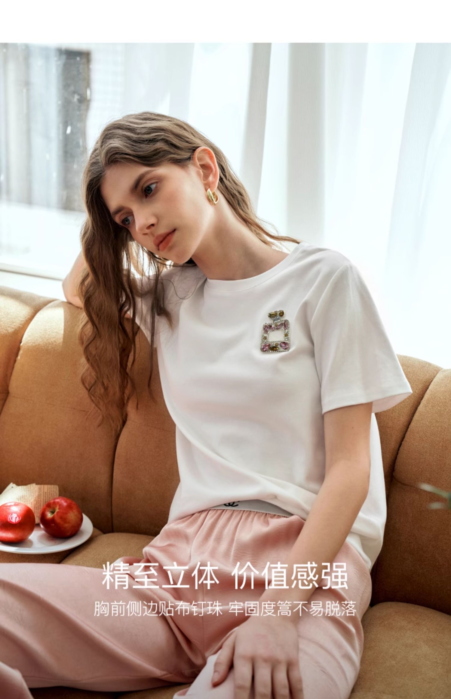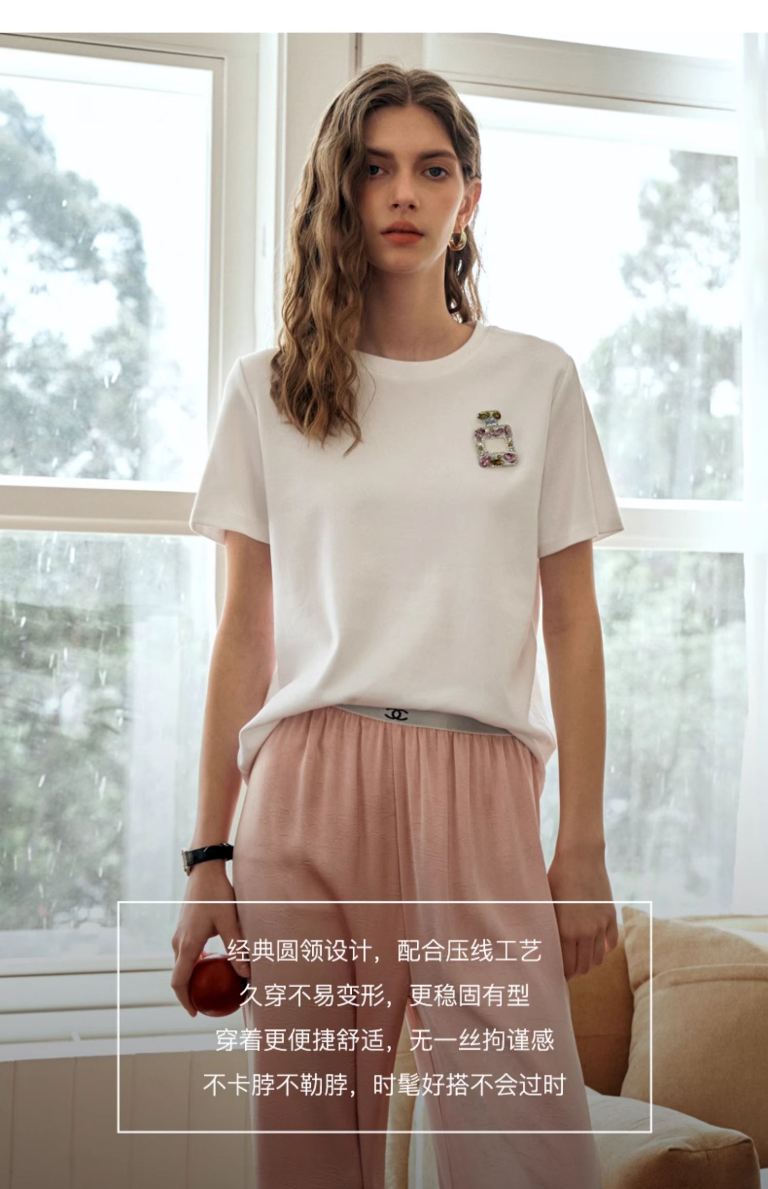 OLrain欧芮儿白色短袖T恤女夏季2024年新款时尚通勤刺绣圆领上衣