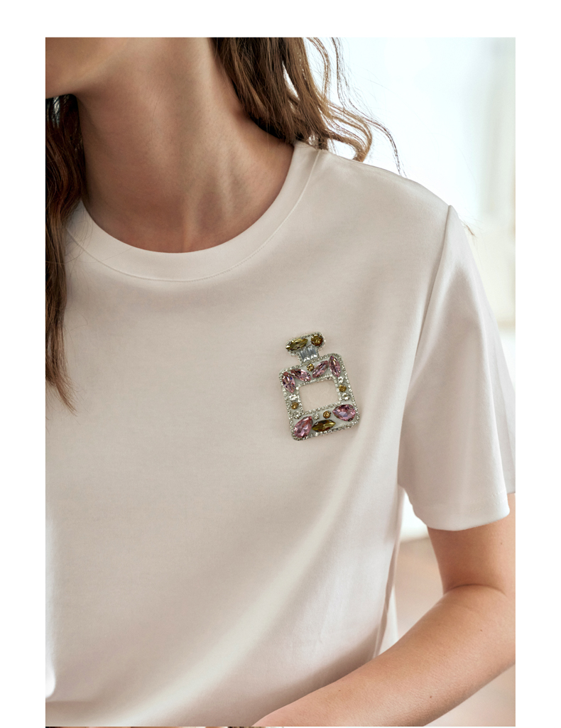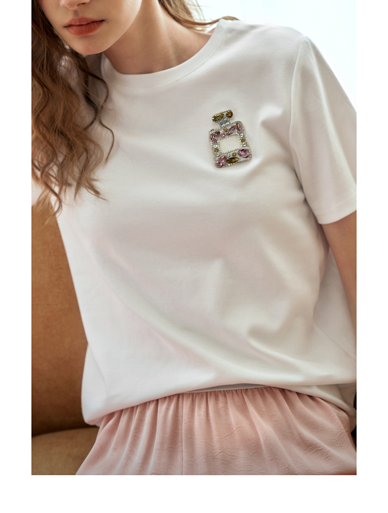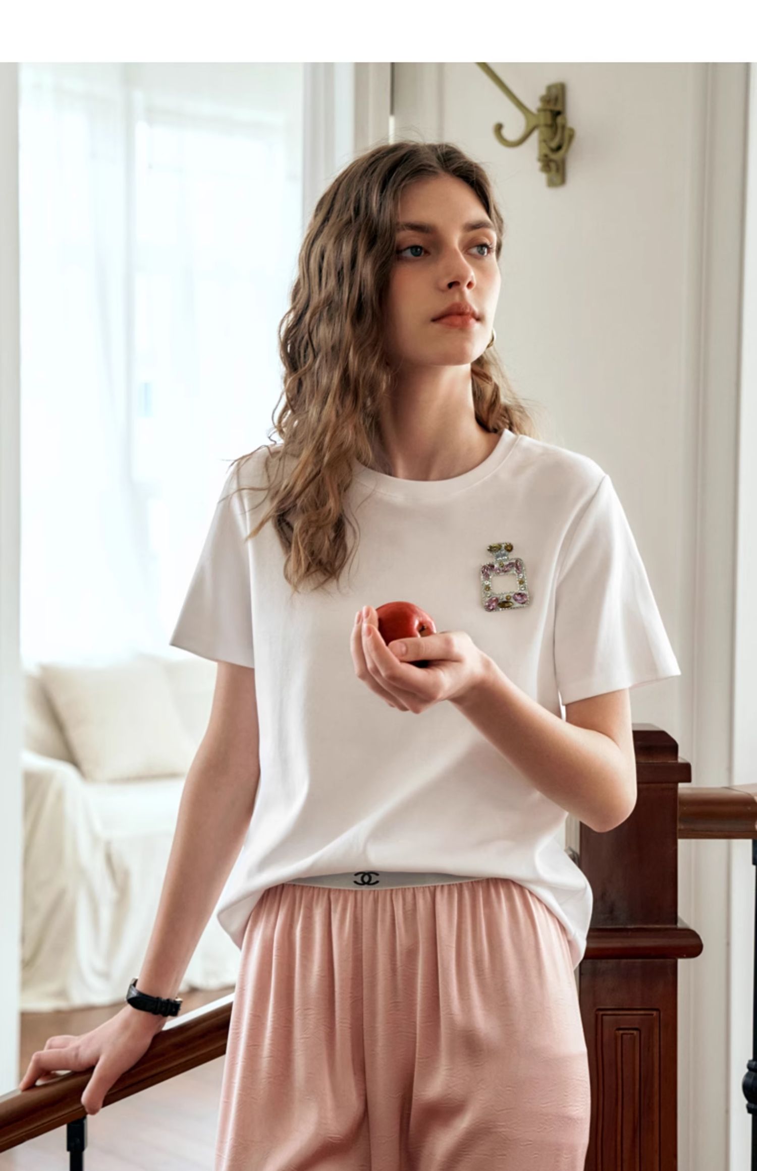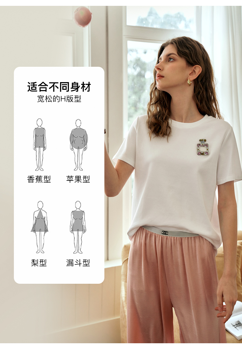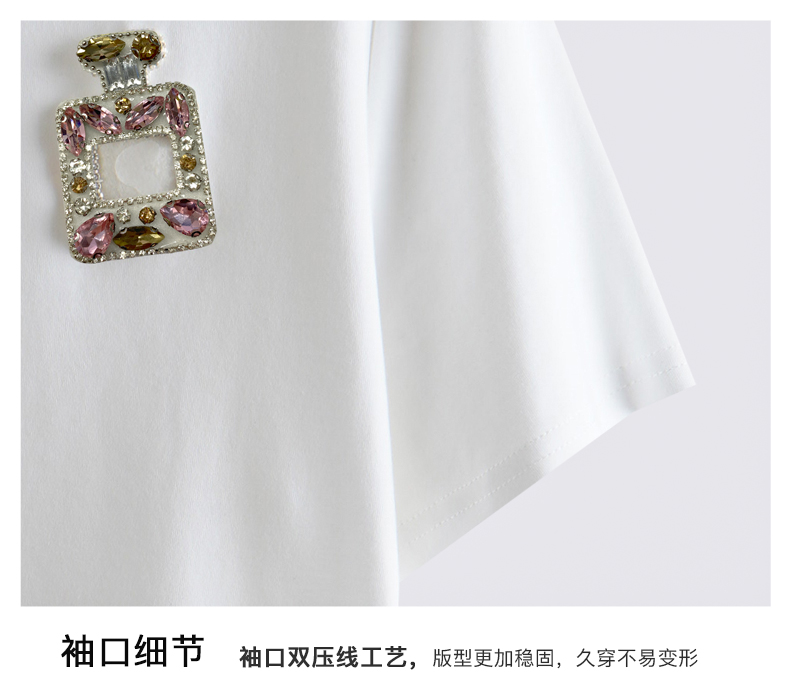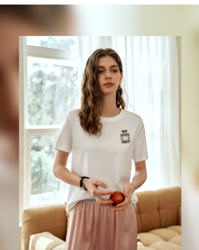 OLrain欧芮儿白色短袖T恤女夏季2024年新款时尚通勤刺绣圆领上衣
