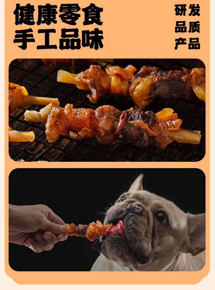 尾巴先生烤肉串 小型犬幼犬法斗比熊鸡肉鸭肉干磨牙棒狗狗零食骨肉相连