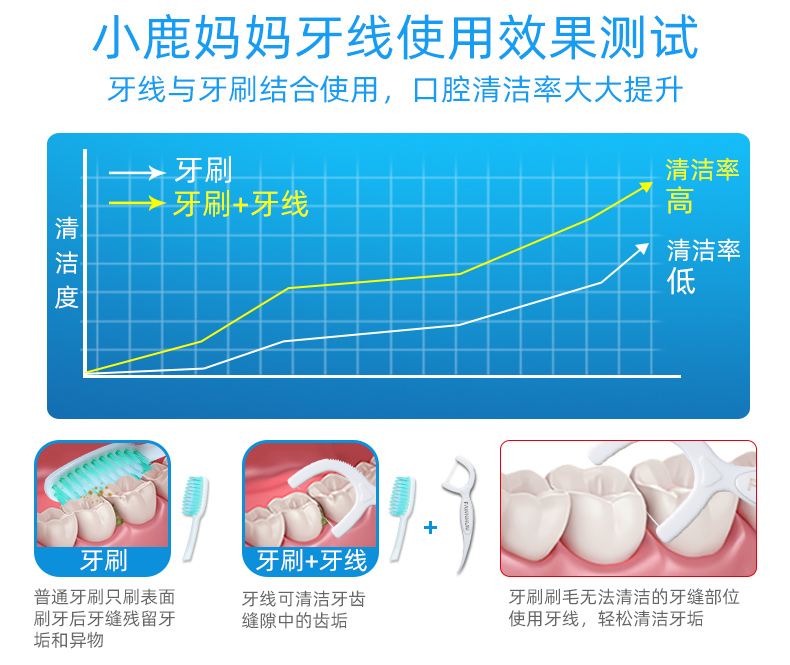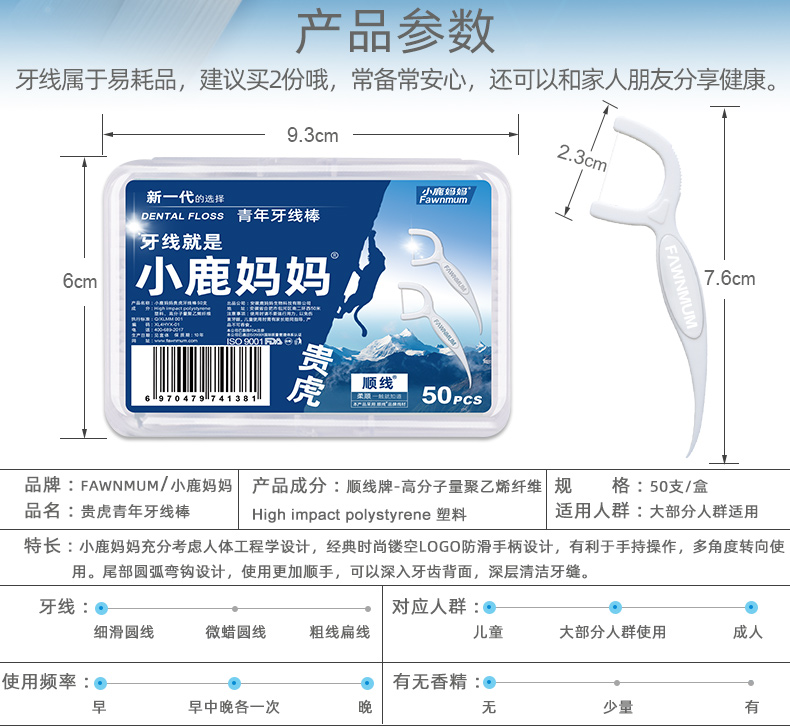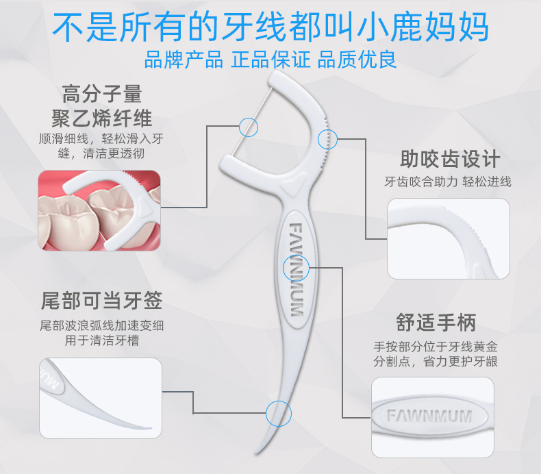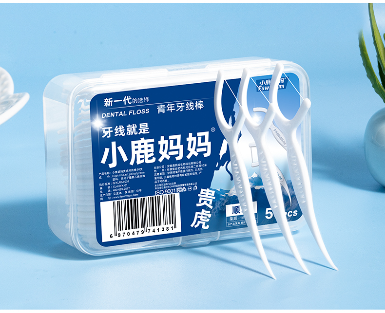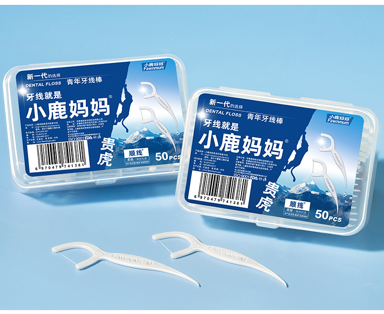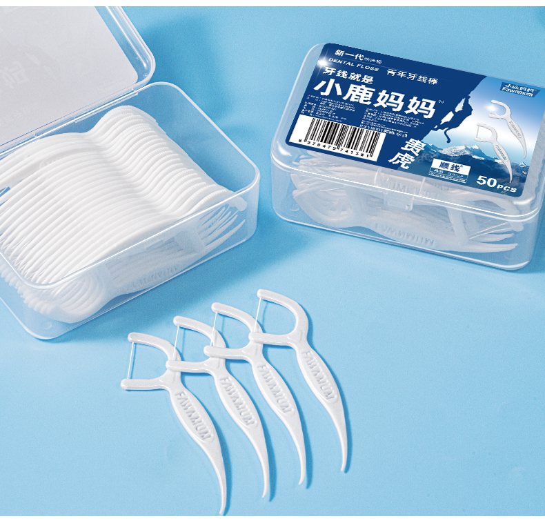 小鹿妈妈细滑深洁护理牙线棒 安全牙签线细家庭装剔牙