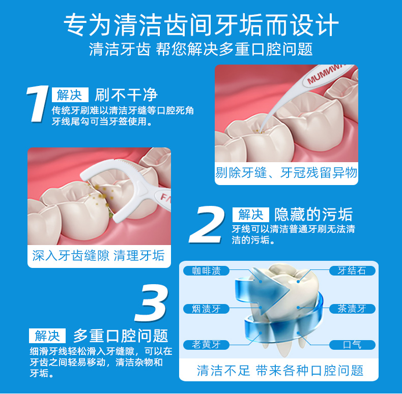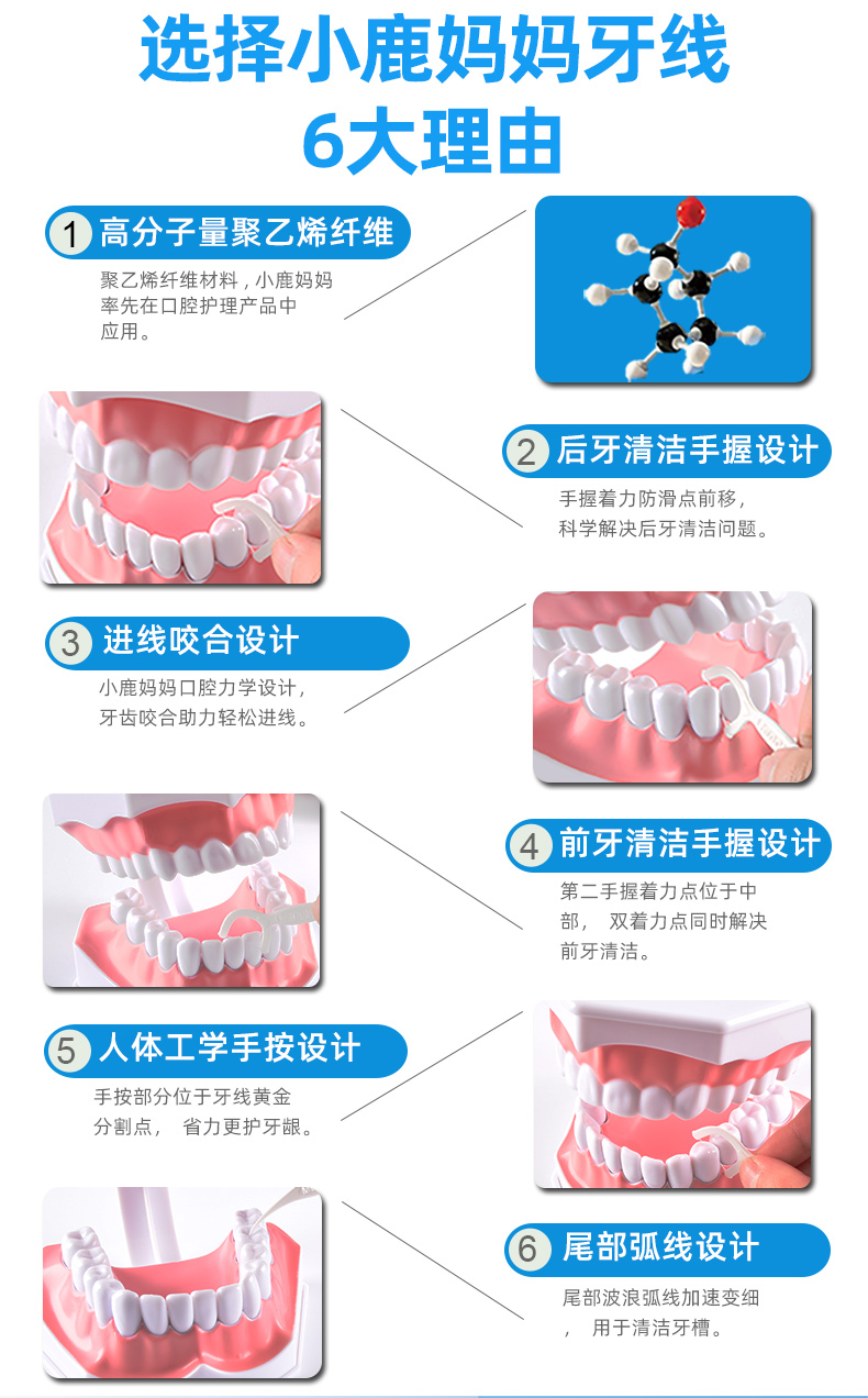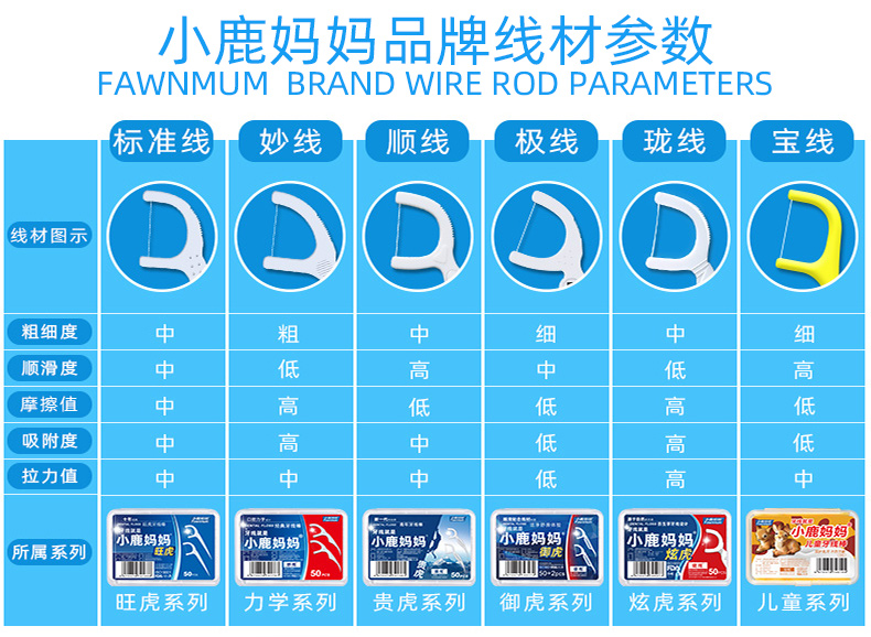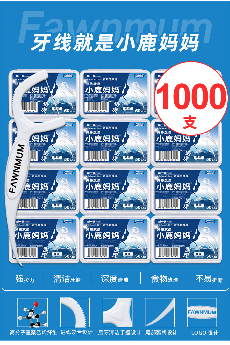 小鹿妈妈细滑深洁护理牙线棒 安全牙签线细家庭装剔牙