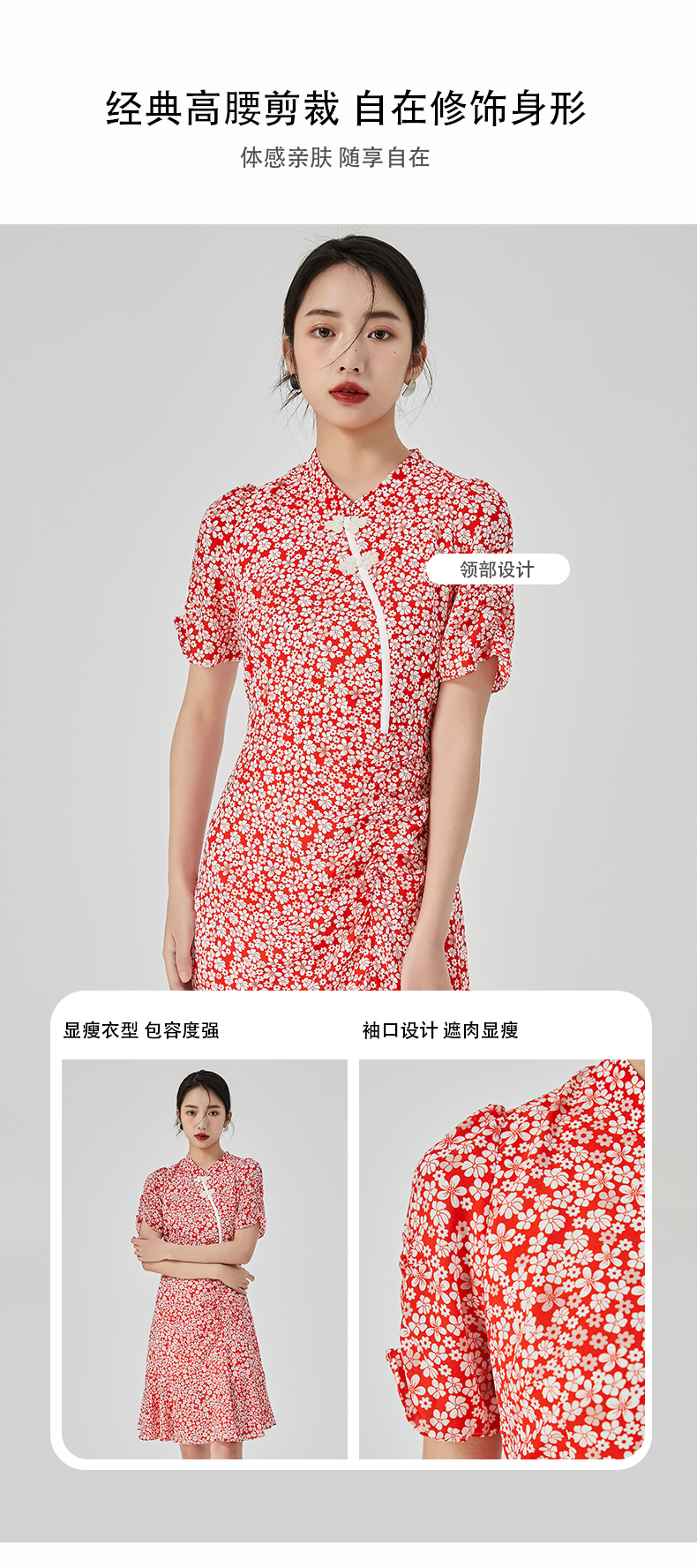 oldcolour2023夏新款气质碎花高腰短款旗袍式连衣裙女GN21101793