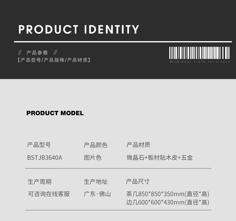 【美居】VIP畅享茶几 BSTJB3640A 极光白+黑玫瑰 商品图2