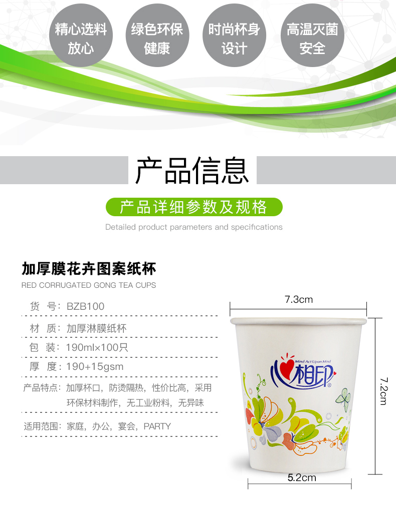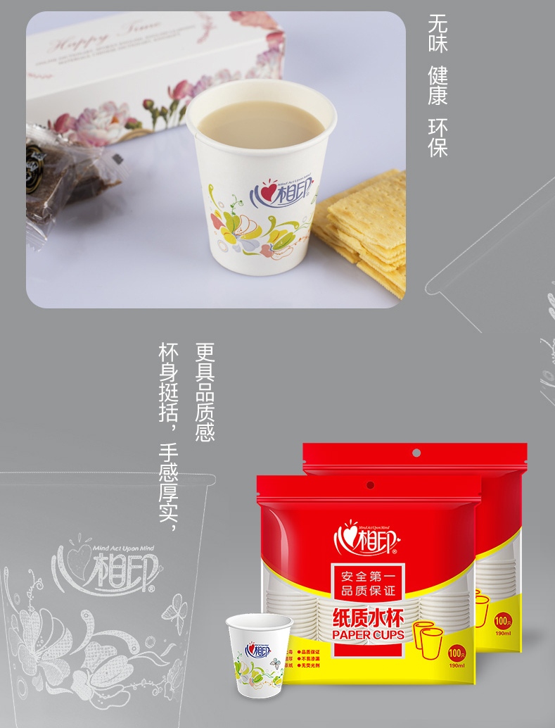 【心相印专区】心相印一次性纸杯BZB100(100个*190ml /个)【定制需提前沟通】